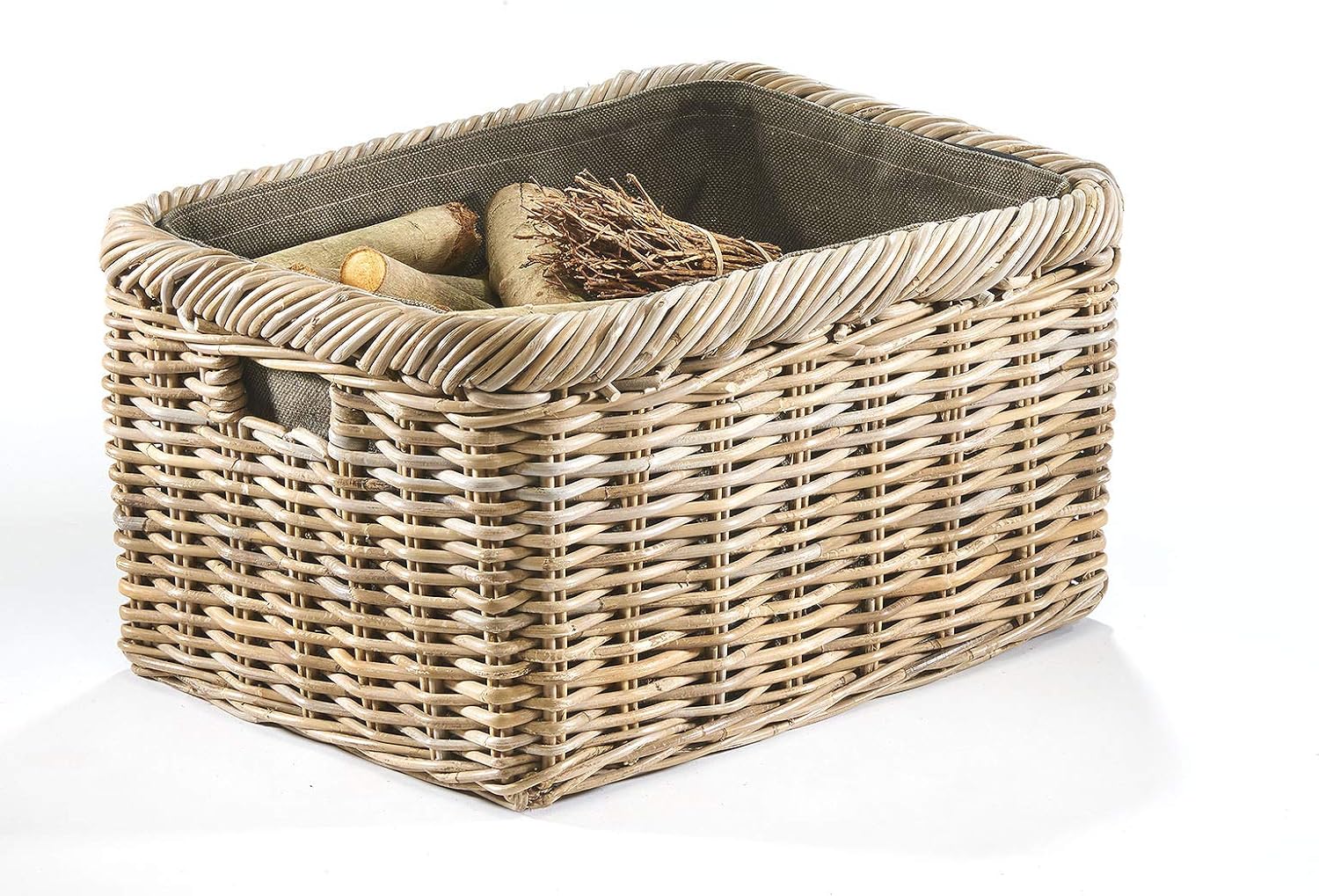 Kobolo Kaminholzkorb Holztrage für Kaminholz - Rattan Kubu grau - Textileinsatz, Grau