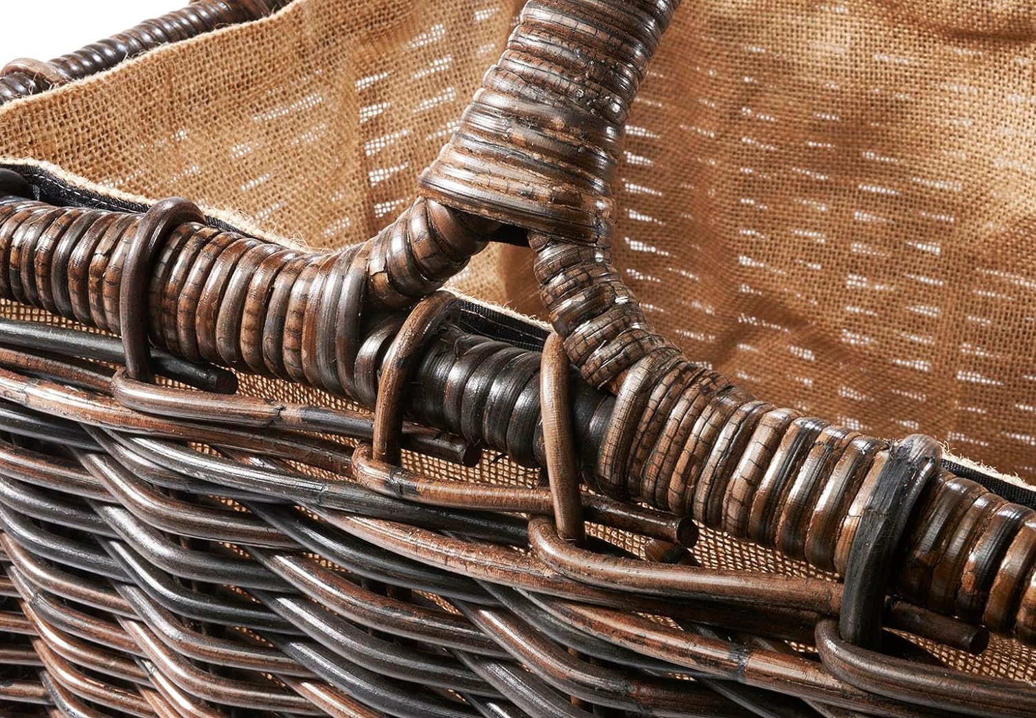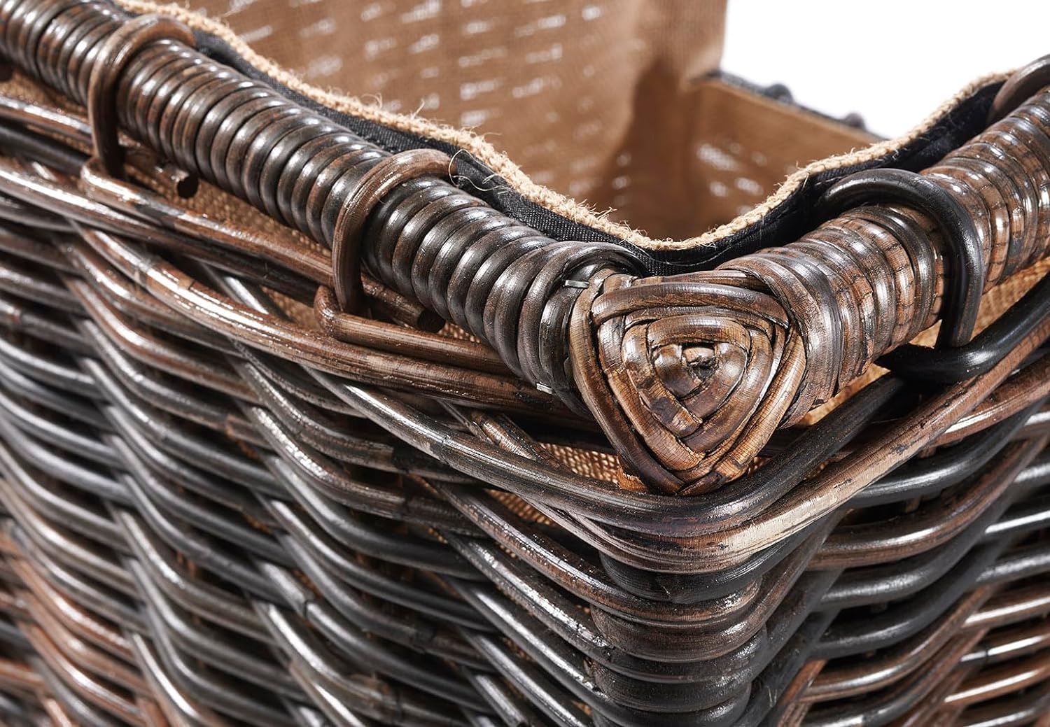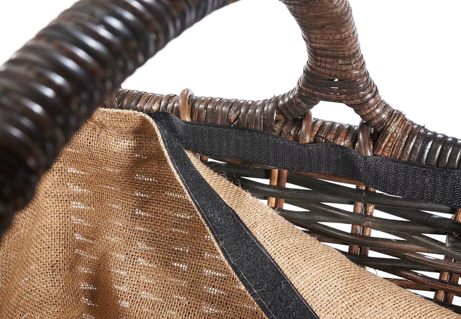 Kobolo Kaminholzkorb Holztrage Holzkorb für Kaminholz Rattan grau mit abnehmbarem Leinenstoff