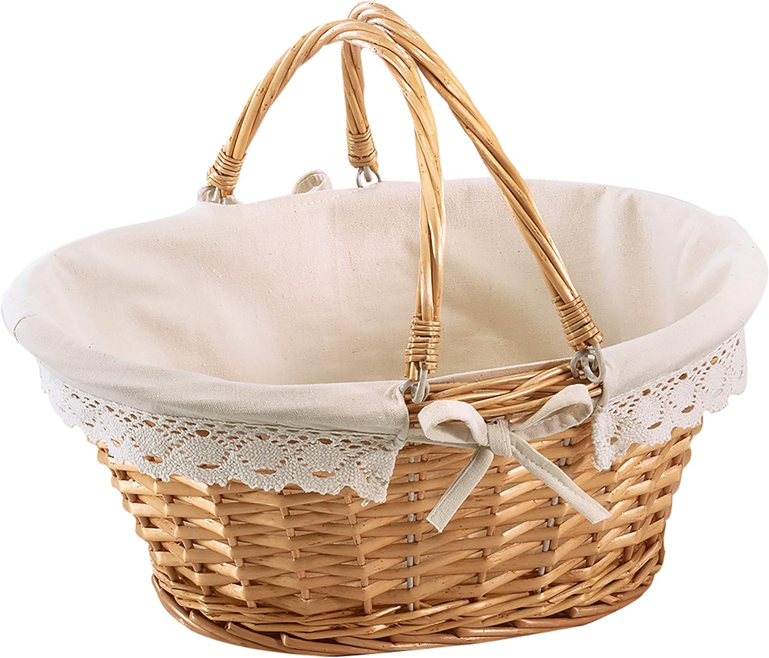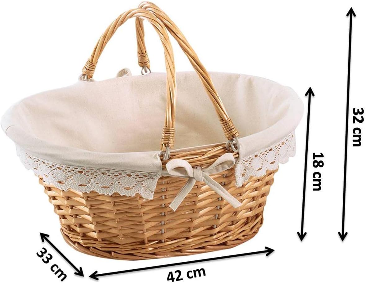 Kobolo Klappbügelkorb - Weidenkorb mit Klapphenkeln und Textilfutter