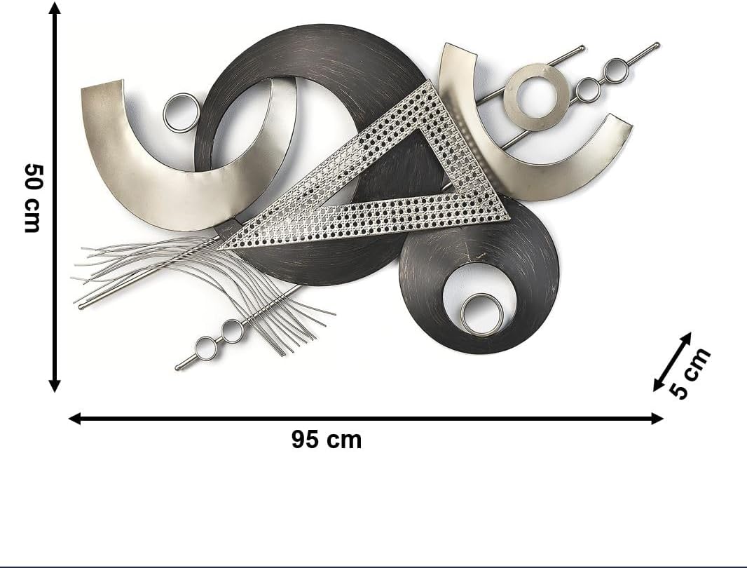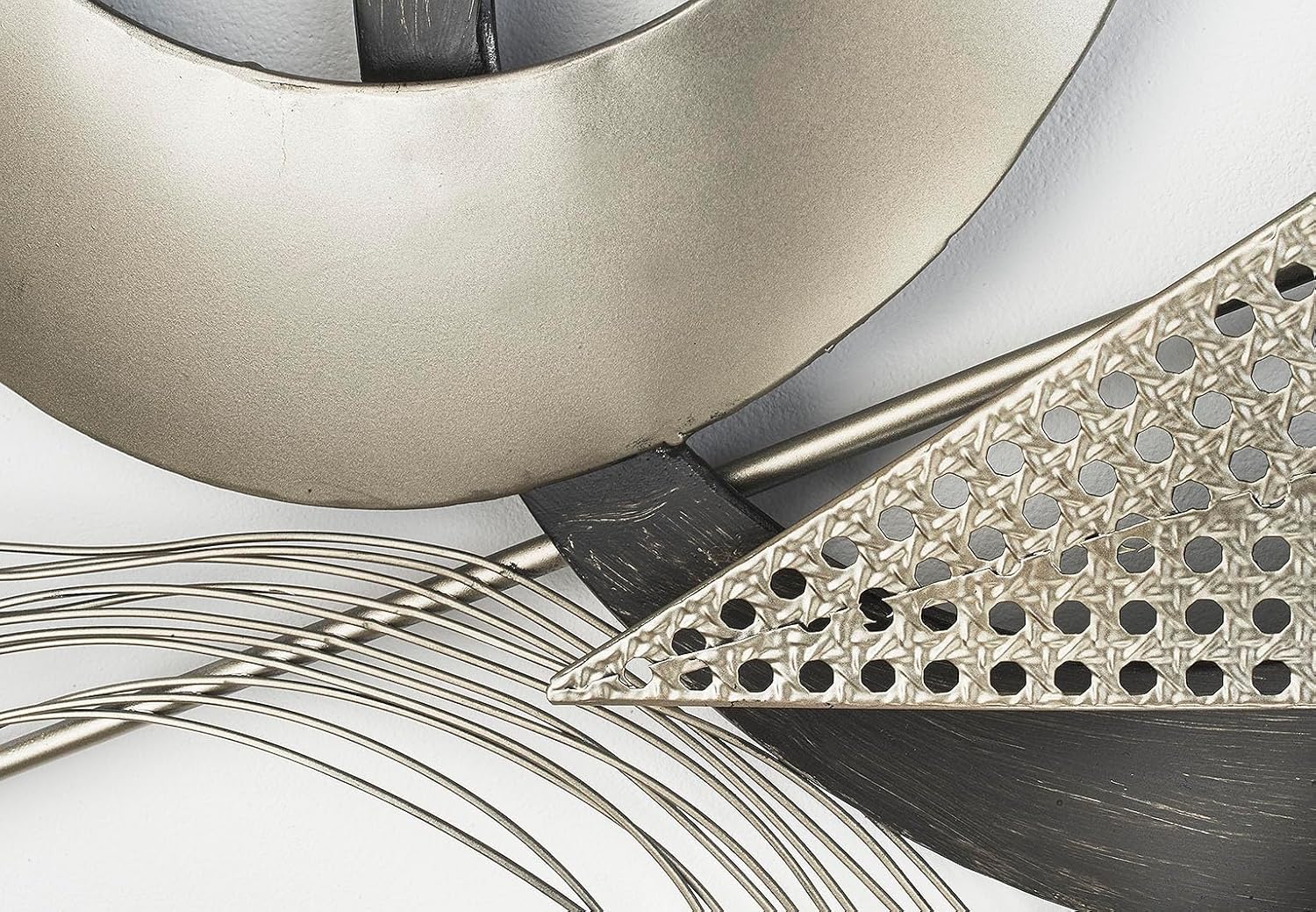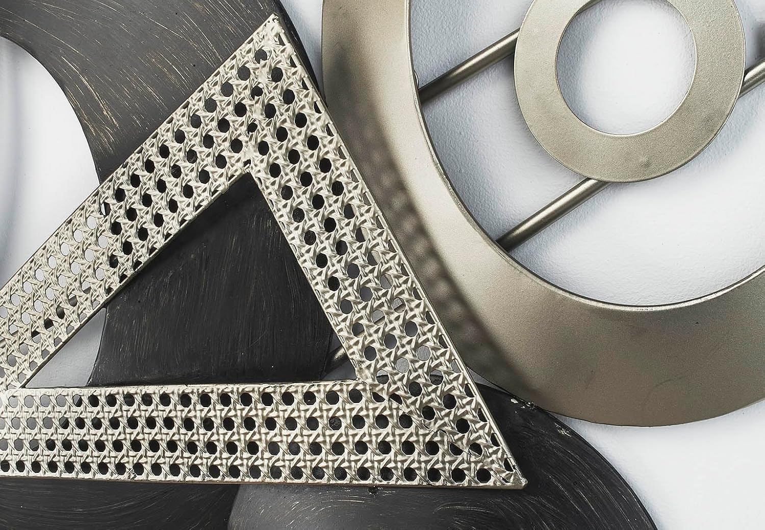• Sehr modernes und dekoratives Wandbild von Kobolo mit Kreisen, Dreiecken und Spiegeln aus Metall in den Farben grau und silberfarben