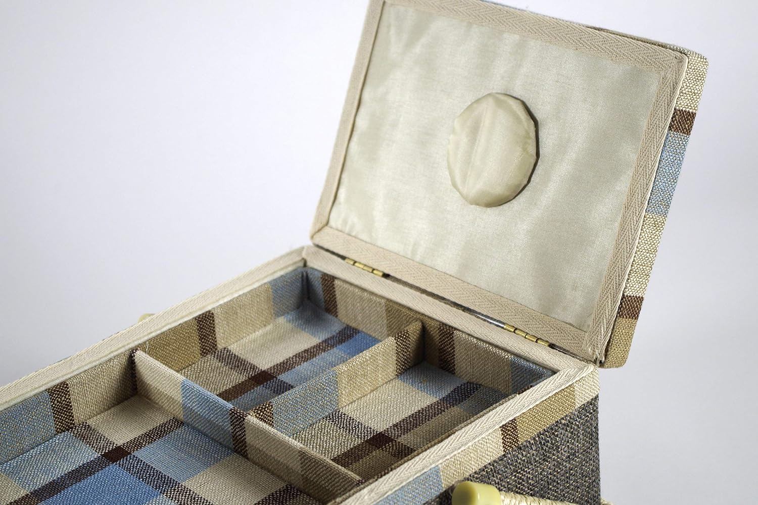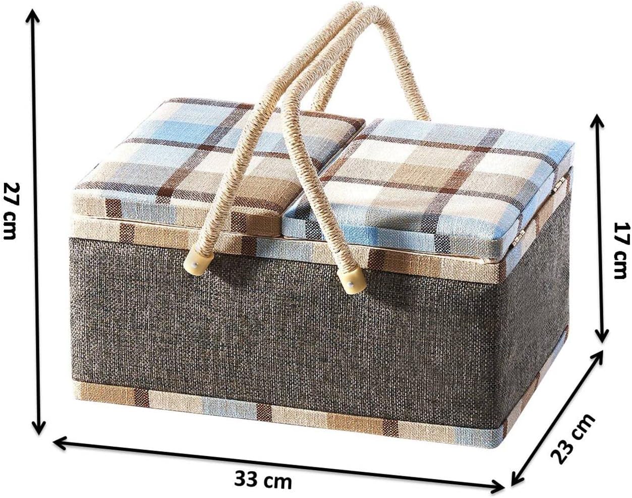 Kobolo Nähkästchen Nähkorb Nähkörbchen Nähkasten - blau kariert - Stoff - 33x23x17 cm