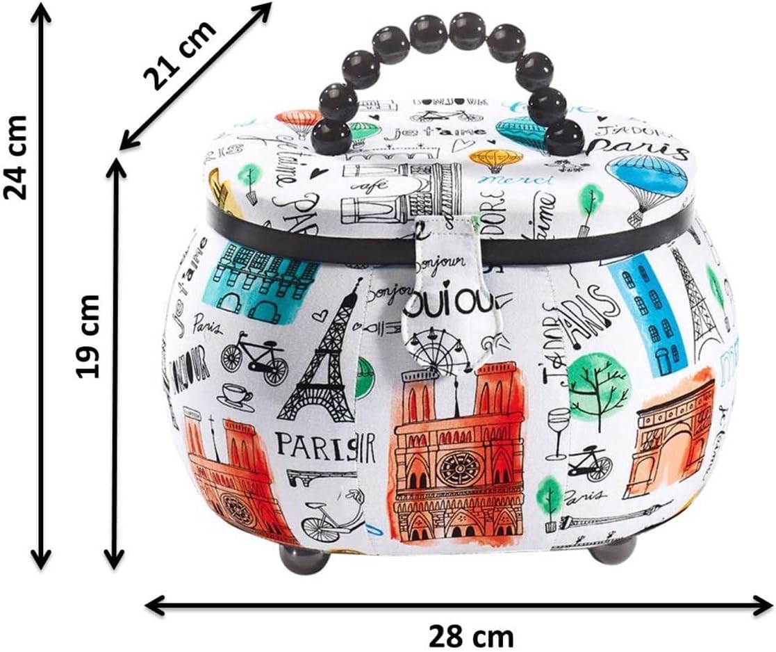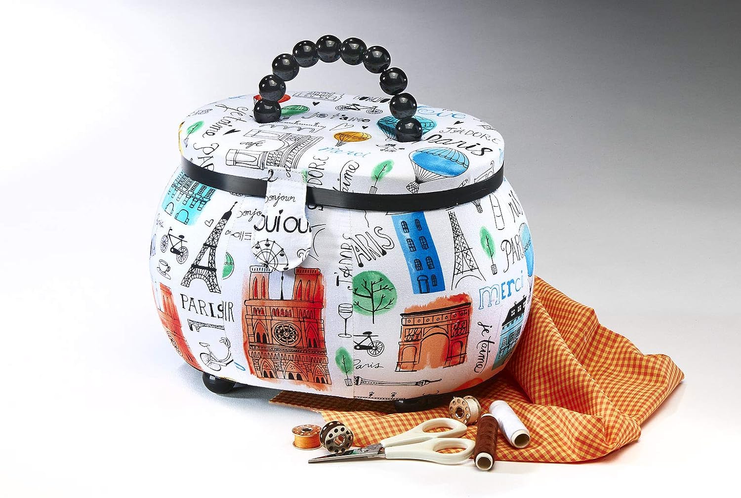 Kobolo Nähkästchen Nähkorb Nähkörbchen Nähkasten -Kunststoff, Textil- Weiss, Bunt - 28x21x19 cm