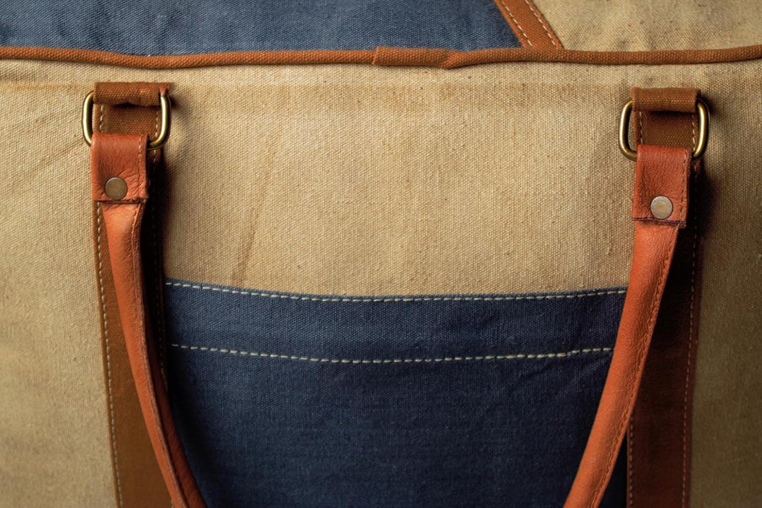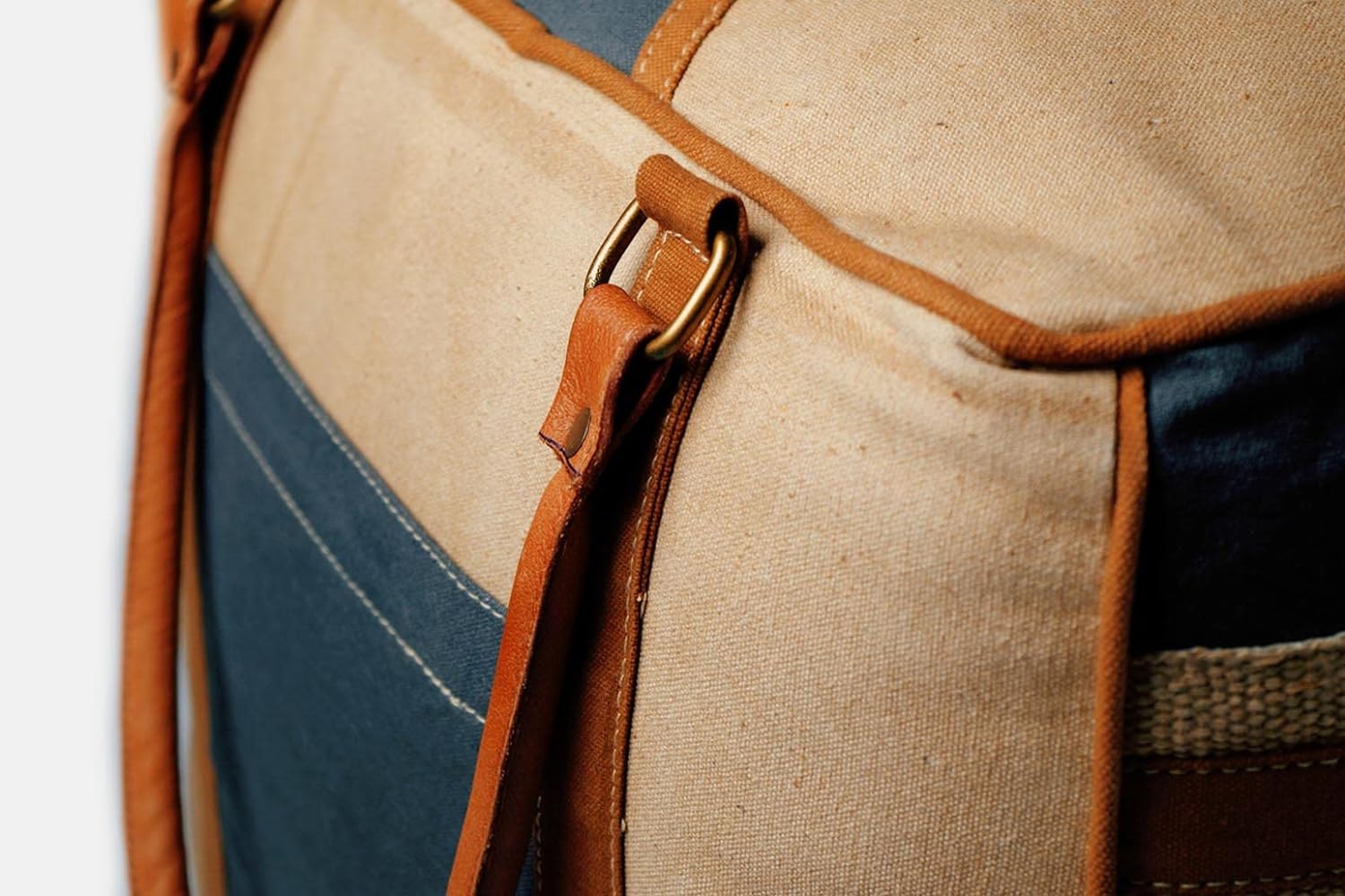 - Upcycling - Dieser modische Vintage-Hocker wurde aus unverwüstlichen, gereinigten Planen von Zelten und Lastwagen in Kombination mit modernen Stoffen und Accessoires hergestellt, was seinen einzigartigen Vintage und Used-Look ausmacht