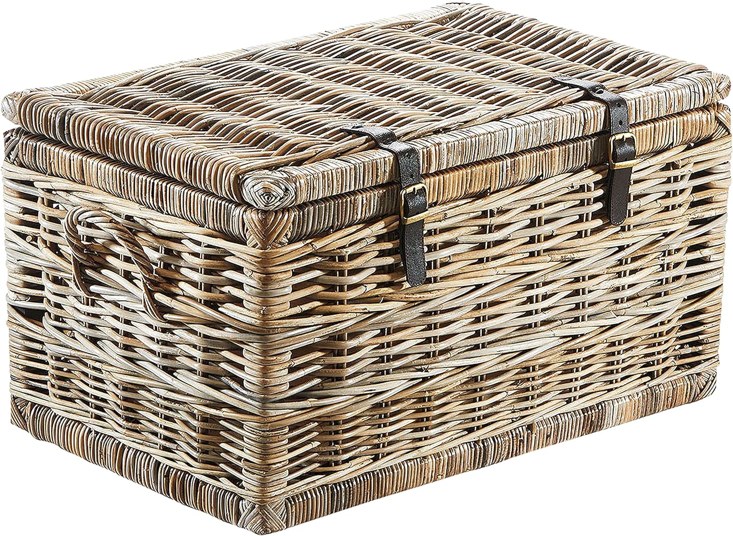 - Dekorative Sitztruhe von Kobolo mit Lederschliessen aus Rattan Kubu grau