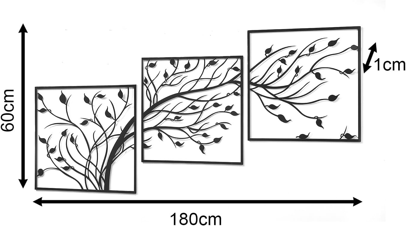 - Das dreiteilige Wandbild von Kobolo aus schwarzem Metall besteht aus drei einzelnen Panels, die zusammengefügt ein beeindruckendes Baum-Motiv ergeben