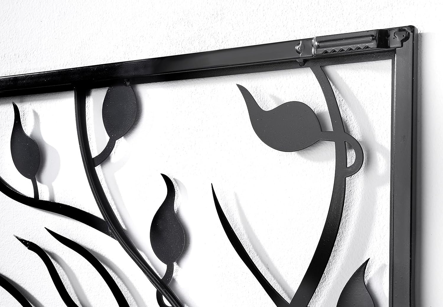 - Das Metall verleiht dem Bild eine robuste und langlebige Qualität, während das schwarze Finish eine elegante und anspruchsvolle Atmosphäre schafft