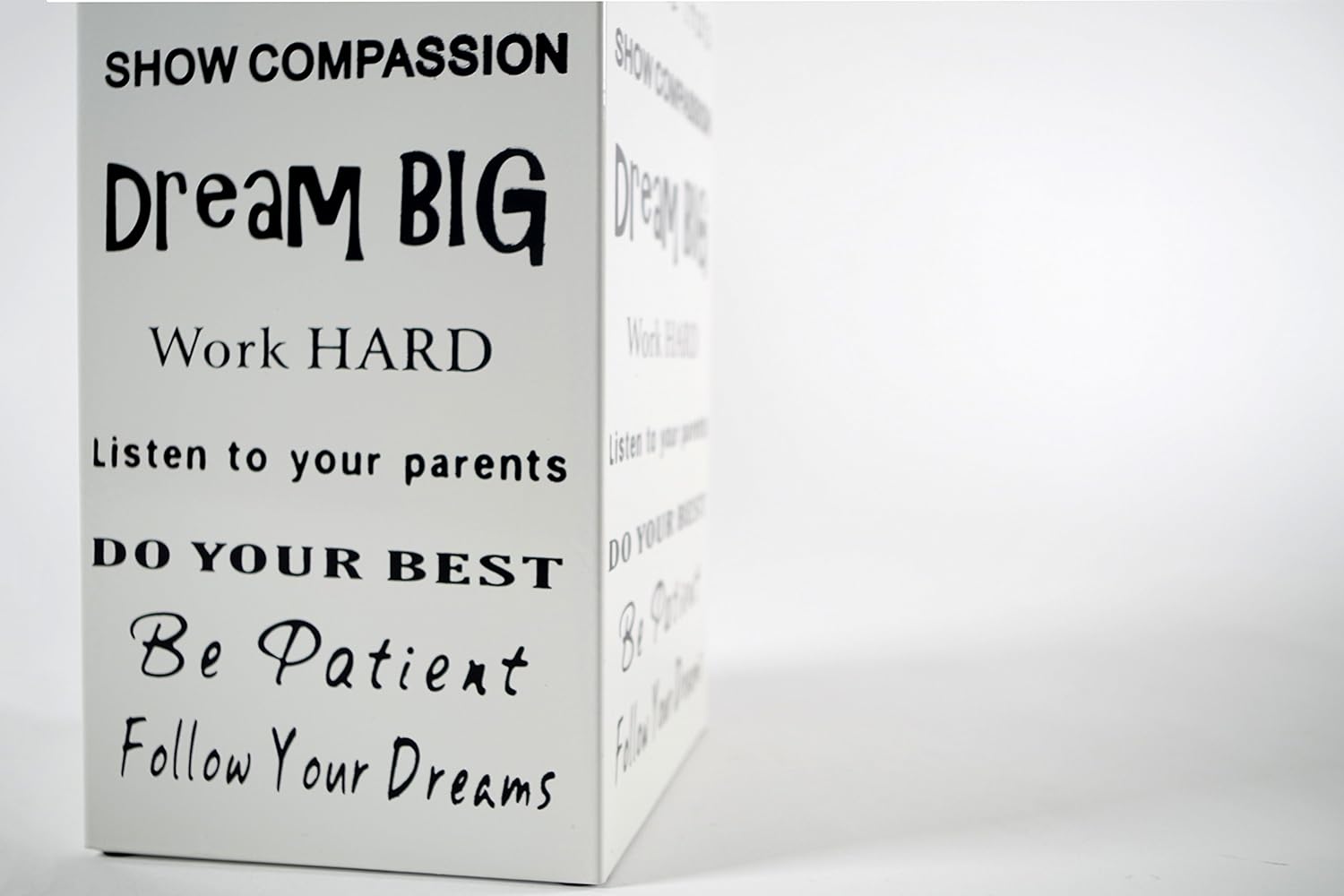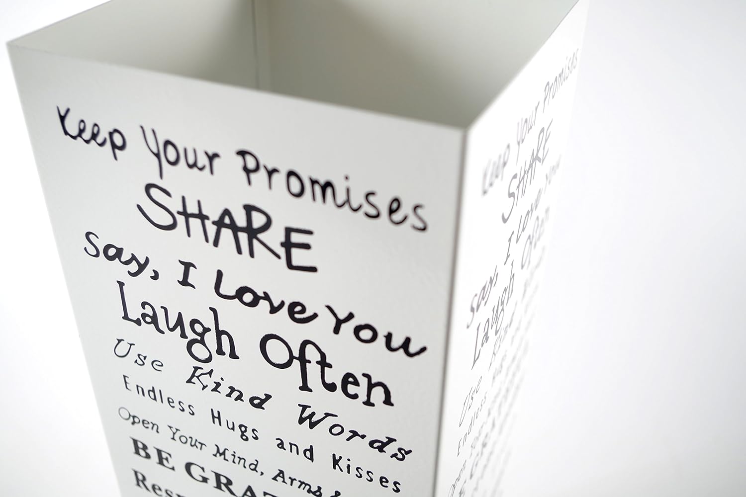 - In edlem Weiss lackiert mit aufgedruckten Sprüchen