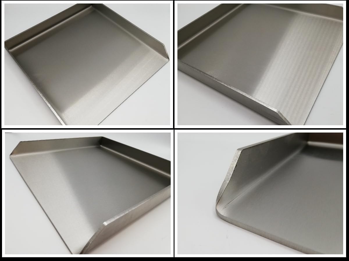 • ►Die Plancha hat die Masse 300 x 300 x 35 x 4mm (L x B x H x Stärke) und wiegt 3,6 Kg – sorgfältig gelasert, die Ecken sind dicht gekantet ohne störende Schweissnaht. Die Kanten sind geschliffen und entgratet, die Grillgutseite ist Korn 400