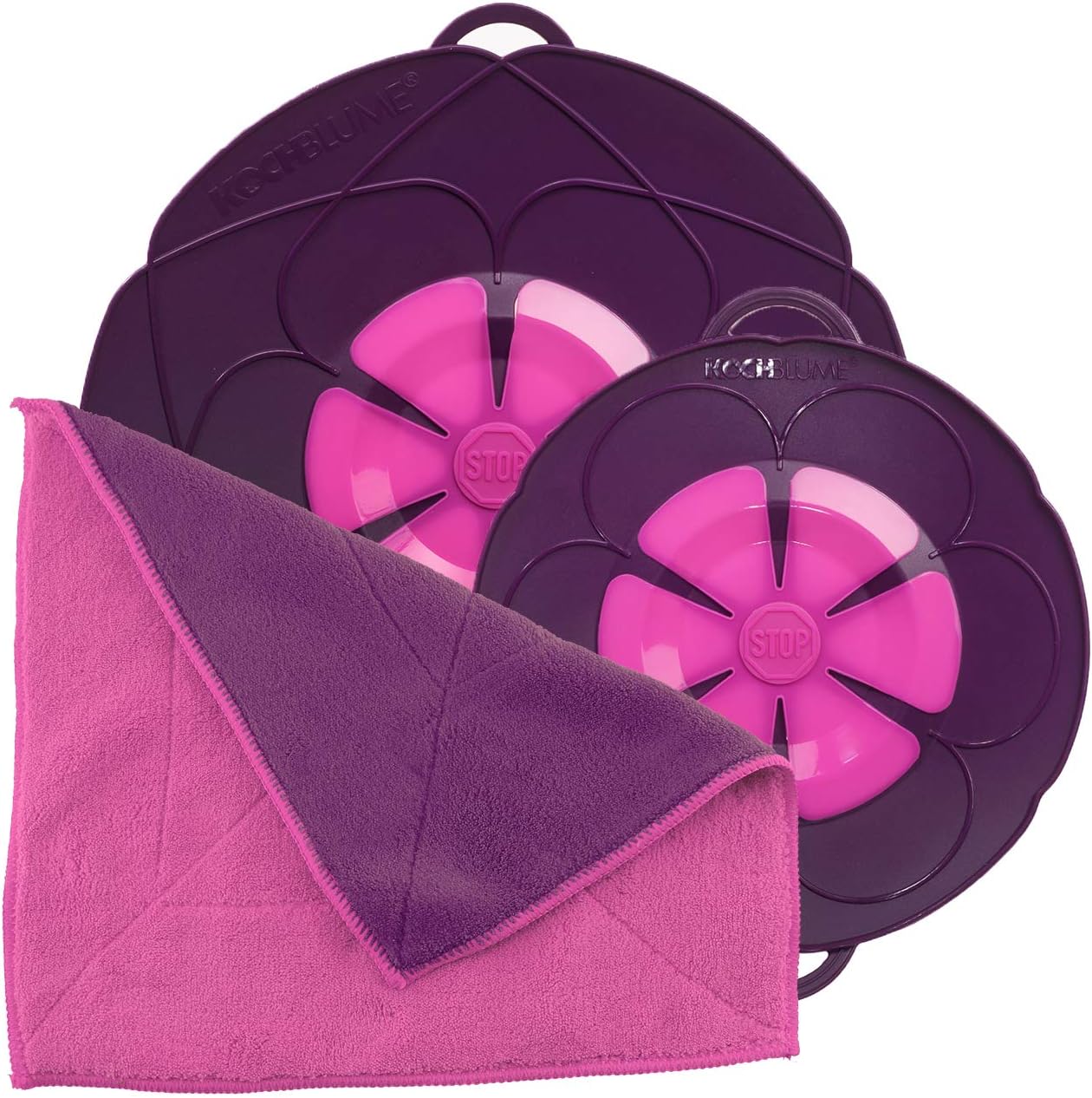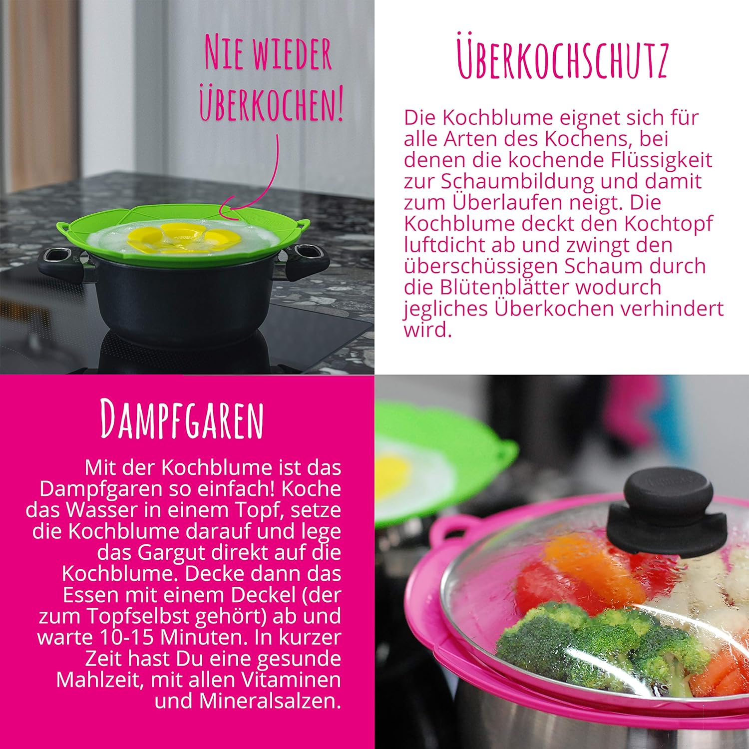 - SET: Kochblume S (Topfgrösse 14-18cm), Kochblume L (Topfgrösse 14-24cm) und das saugstarke Microfasertuch von Kochblume
