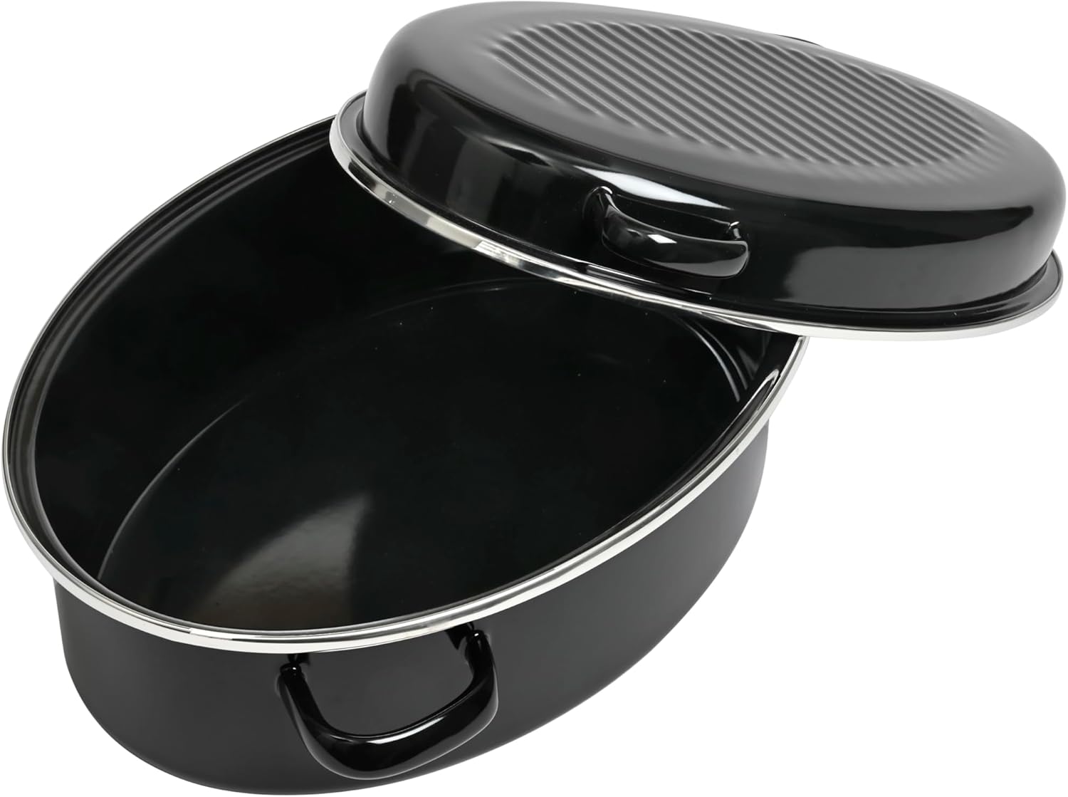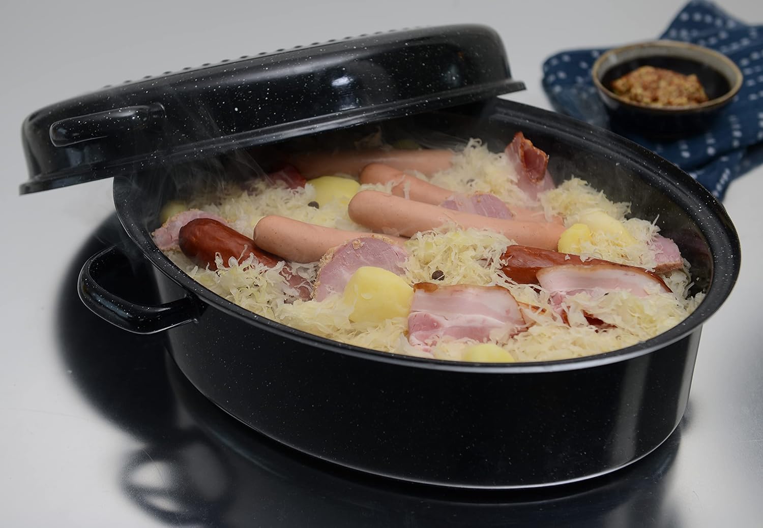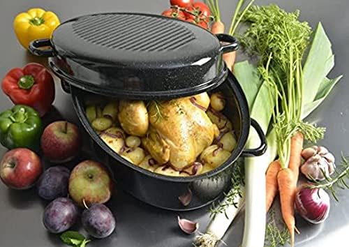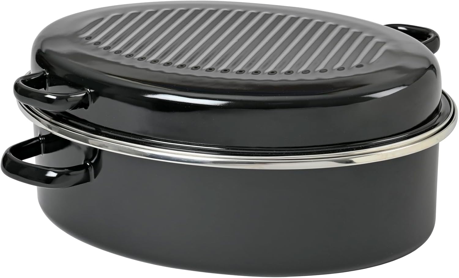 • Rillendeckel verhindert ein Austrocknen des Bratgutes und eignet sich zur Nutzung als Grillschale im Backofen