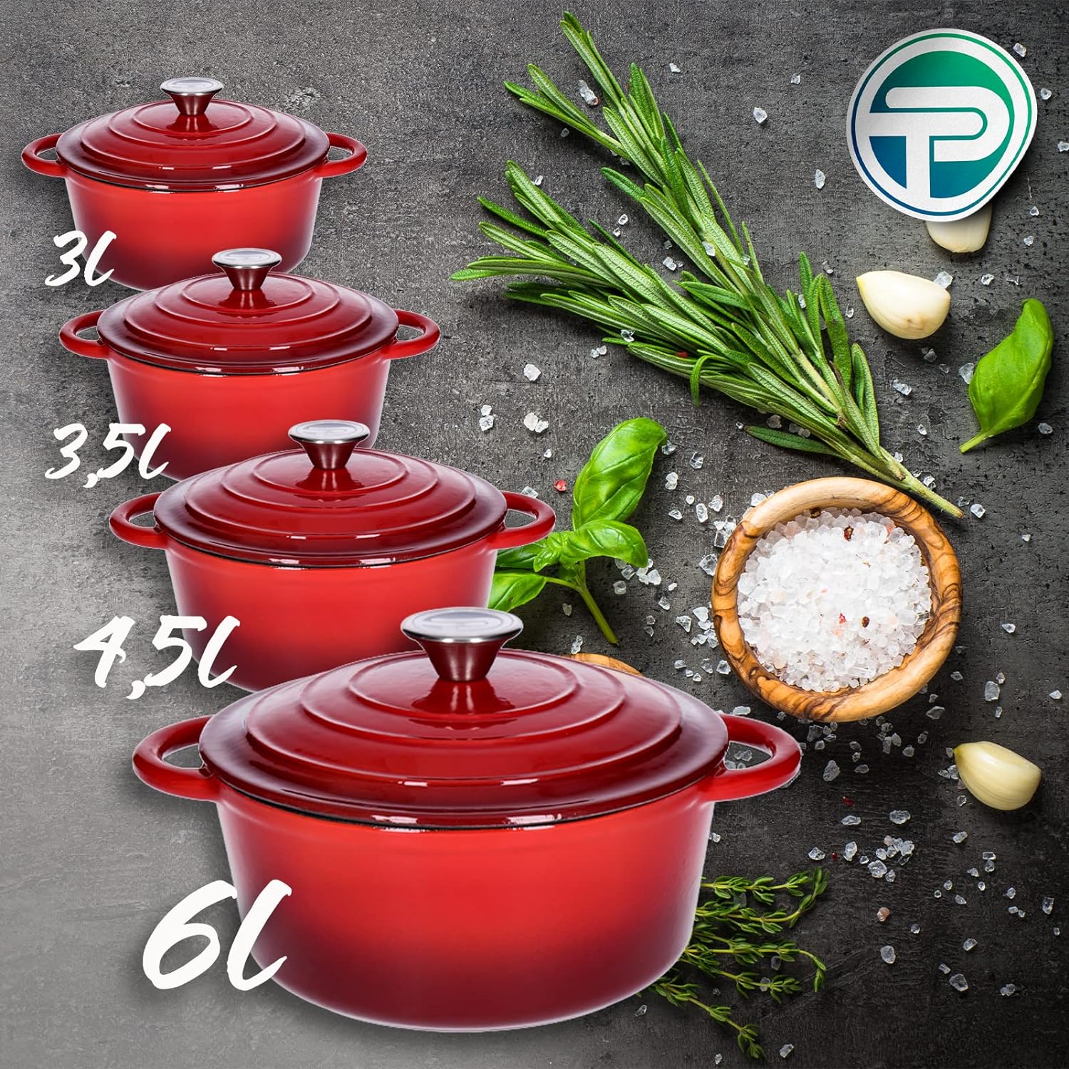 - Die energieeffizienten Töpfe sind emailliert und somit sofort einsatzfähig. Das heisst, sie müssen nicht eingebrannt, oder anderweitig vorbereitet werden. Durch die Emaille-Schicht kannst du unbesorgt säurehaltige Lebensmittel wie z.B. Wein oder