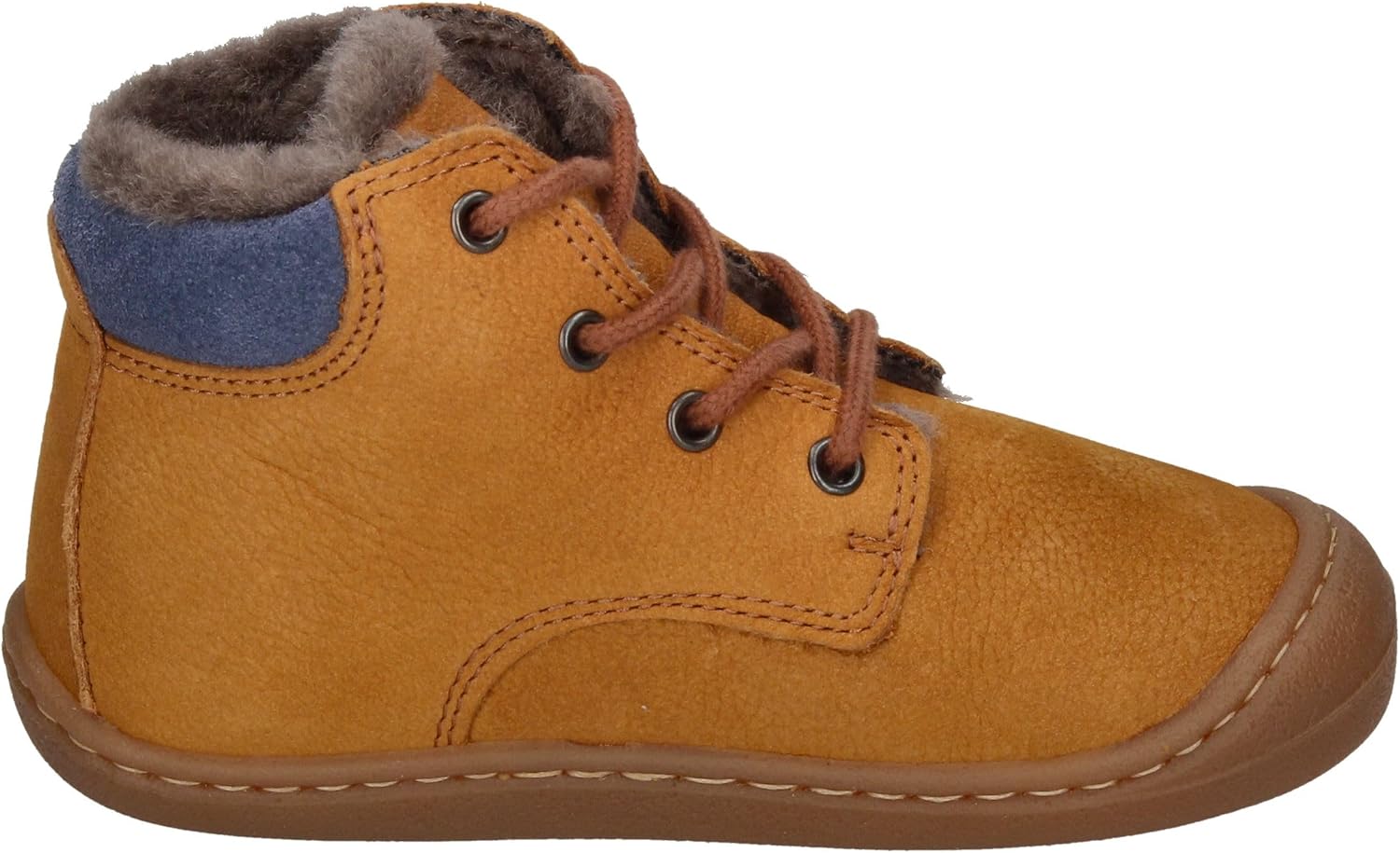 PRODUKTBESCHREIBUNGEN Ganz weicher, wasserabweisender Winterschuh / Halbschuh / Barfussschuh zum schnüren, in mittlerer Höhe bis zum Knöchel gehend, innen mit kuscheliger Lammwolle ausgelegt, ganz weicher quer und längs flexibler Sohle ohne Sprengung oder Erhöhung, auf dem etwas schmaleren Leisten ( verglichen mit den D Modellen von KOEL Barefoot ) in einem gedeckten hellen, Oliv Ton mit Ockergelb abgesetzt von KOEL Barefoot. !!Bitte beachten sie die als Bild hinterlegte Tabelle zum messen der Schuhgrösse, um so ein unnötiges hin und her senden zu vermeiden - bei Fragen mailen Sie uns einfach vor dem Kauf an - Ihr Team KJ Fashion !! Modell: Bill Lambswool 06W004.129 in 360 Olive Material: weiches ( Hydrophobiertes ) Nubuk Leder - Wasserabweisend | Innen: Lammwolle | Sohle: Gummi Weite (diese bezieht sich auf das Volumen im Schuh) M - also für normal hohen bis flachen Spann geeignet | Leisten (Stehfläche Fuss) normal bis ins schmale gehend | Mittelfuss: normal bis etwas schmaler | Ferse: normal | Zehenbox: anatomisch gerundet geformt aber eher schmal ( für eher zierliche Füsse geeignet ) - gefütterter Barfussschuh in etwas höherer Form um dem Knöchel seitlich etwas mehr Halt zu geben - abgepolsterter Einstieg, innen mit ganz weicher, kuscheliger Lammwolle ausgelegt - mit Schnürbändern / 2 Farben zum wechseln , optimal an den Fuss anzupassen und so auch super im Umfang / der Spannhöhe zu regulieren - herausnehmbare weiche, mit Lammwolle bezogene Innensohle, wird diese herausgenommen wird es noch weicher und flexibler - knautschbare, super flexible Gummisohle mit Minimalprofil, Nullabsatz und keinerlei Erhöhungen im Mittelfuss oder der Ferse - an der Spitze im Zehenbereich ist die Sohle hochgezogen als Schutzkante - super weich und flexibel, das Material weicht sich noch mehr beim tragen der Schuhe Der optimale Schuh für die kalten Tage - ein hochwertig verarbeiteter Schuh in schlicht, zeitloser Optik von KOEL4KIDS.