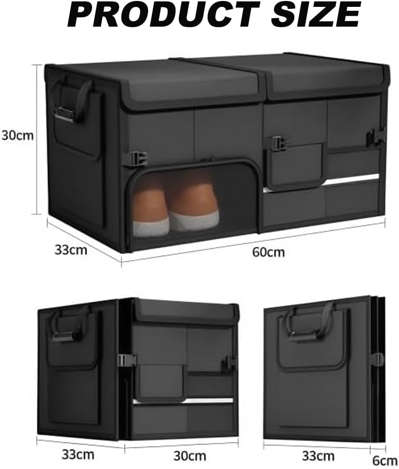- Grosses Fassungsvermögen: Die Auto-Organizerbox verfügt über 2 Fächer, 2 seitliche Taschen und ein separates Schuhfach. Jedes Fach bietet Platz für Gegenstände verschiedener Grössen und eignet sich perfekt für die Aufbewahrung von Auto-Zubehör