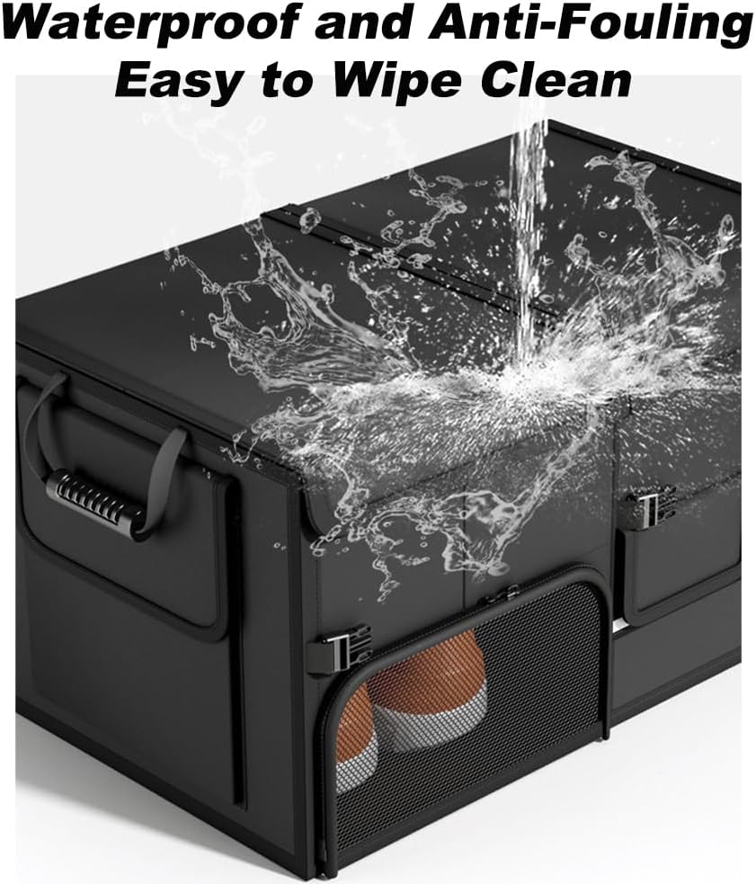 - Tragbarer Organizer mit Griffen: Der Auto-Organizer ist an beiden Seiten mit Griffen ausgestattet, die ein einfaches Tragen der Box ermöglichen. Sowohl im aufgeklappten als auch im zusammengefalteten Zustand ist der Transport und die Bewegung praktisch