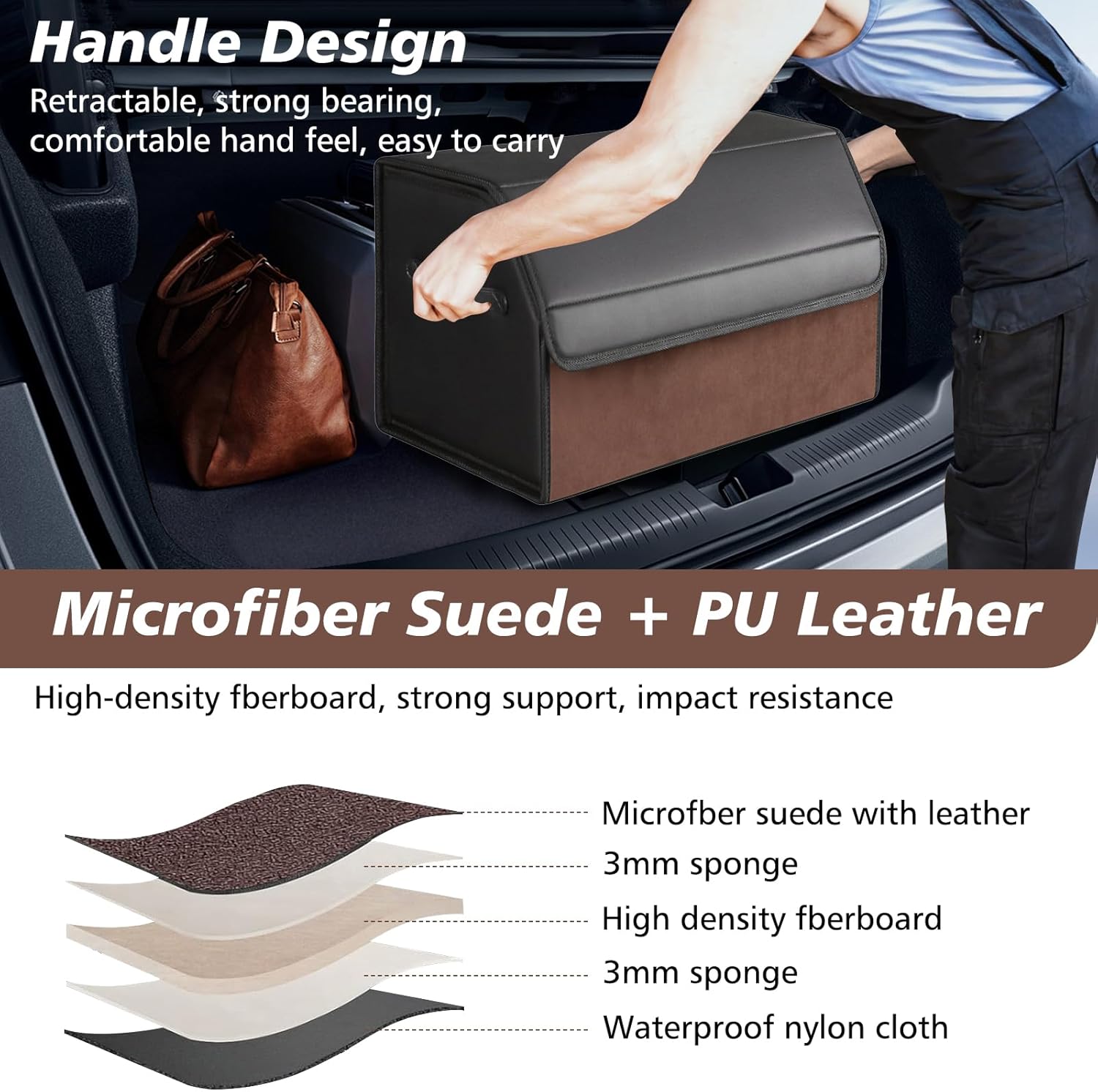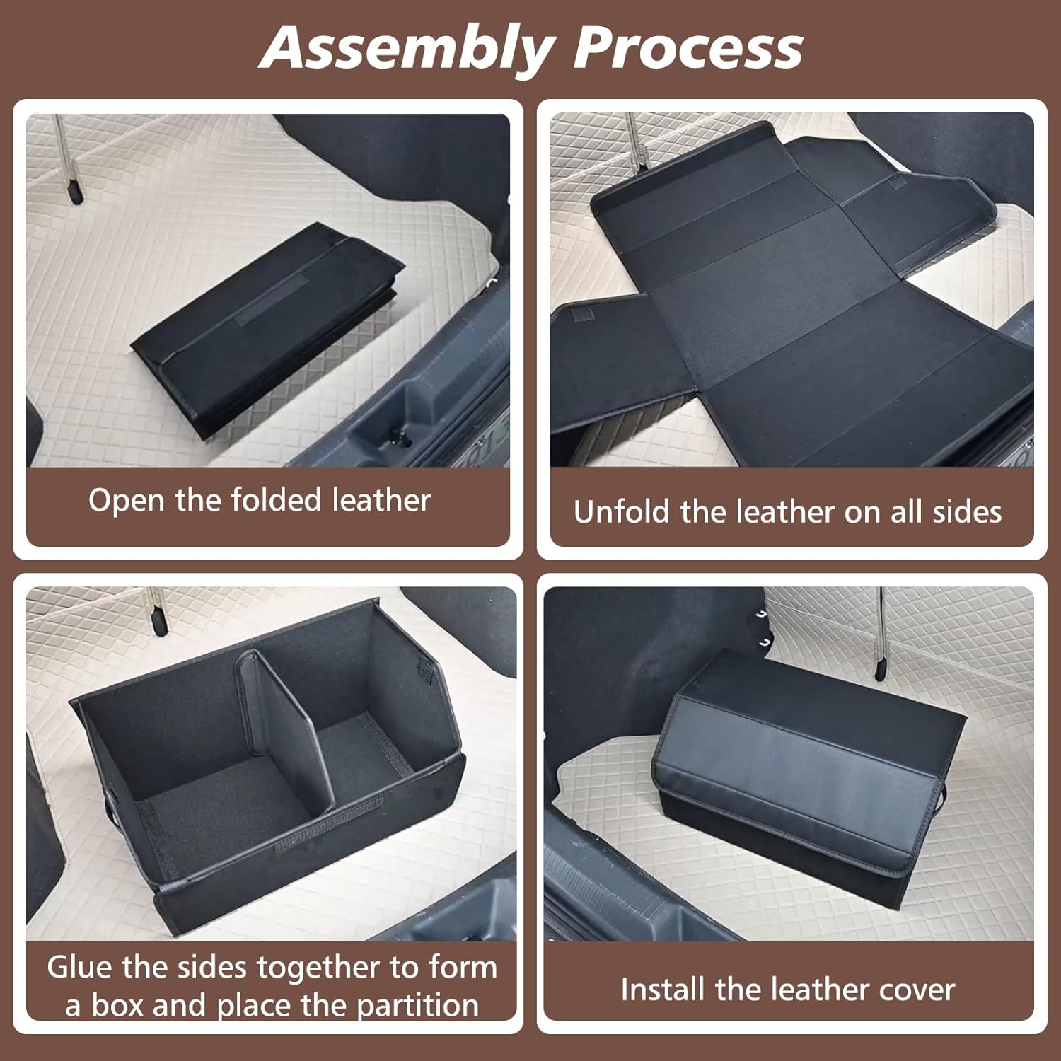 • WASSER- UND STAUBBESTÄNDIG: Faltbare Auto Kofferraumtasche besteht aus Ledermaterial, die Wasser- und Staubschäden verhindern und die Lebensdauer verlängern kann. Die Reinigung ist sehr bequem, einfach die Oberfläche mit einem feuchten Tuch abwischen.