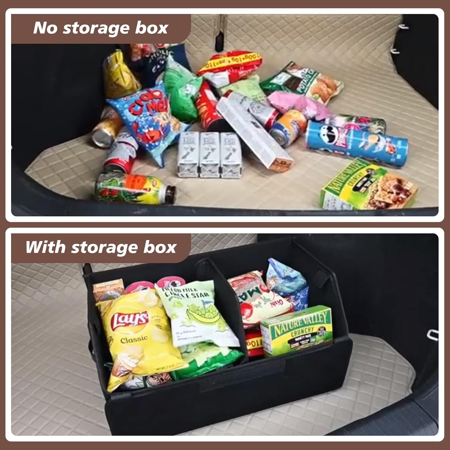 • Tragbarer Griff: Der Koffer hat an beiden Seitengriffe, die das Anheben und einfache Bewegen erleichtern, können Sie Auto Kofferraum Organizer bequem tragen. Abnehmbare Trennwände ermöglichen eine optimale Raumnutzung, ohne die aufbewahrung von
