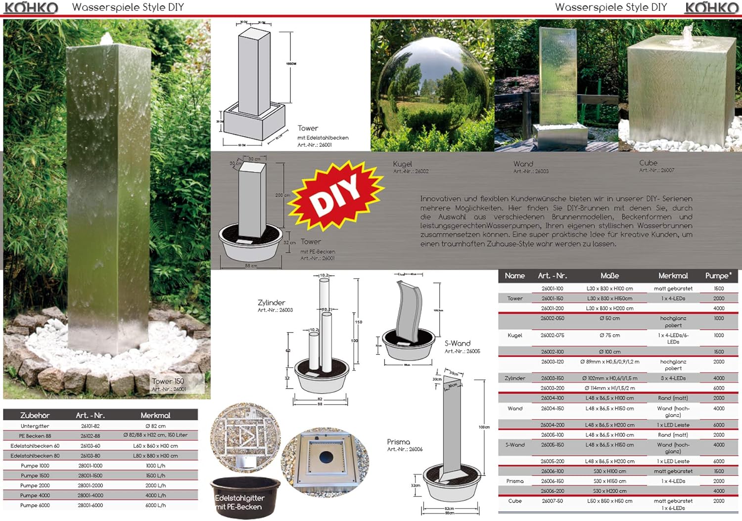 - Hochwertiger Springbrunnen "S-Wand" aus Edelstahl V2A