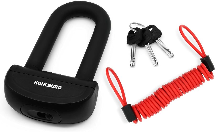 - MIT PRAKTISCHEM ERINNERUNGSKABEL – Dem kompakten Motorradbremsscheibenschloss ist ein 180 cm langes Schlaufenkabel in leuchtendem rot beigelegt. Dieses verbindet Lenker und Vorderrad miteinander, um an die Sperrung der Bremsscheibe vor dem Losfahren zu