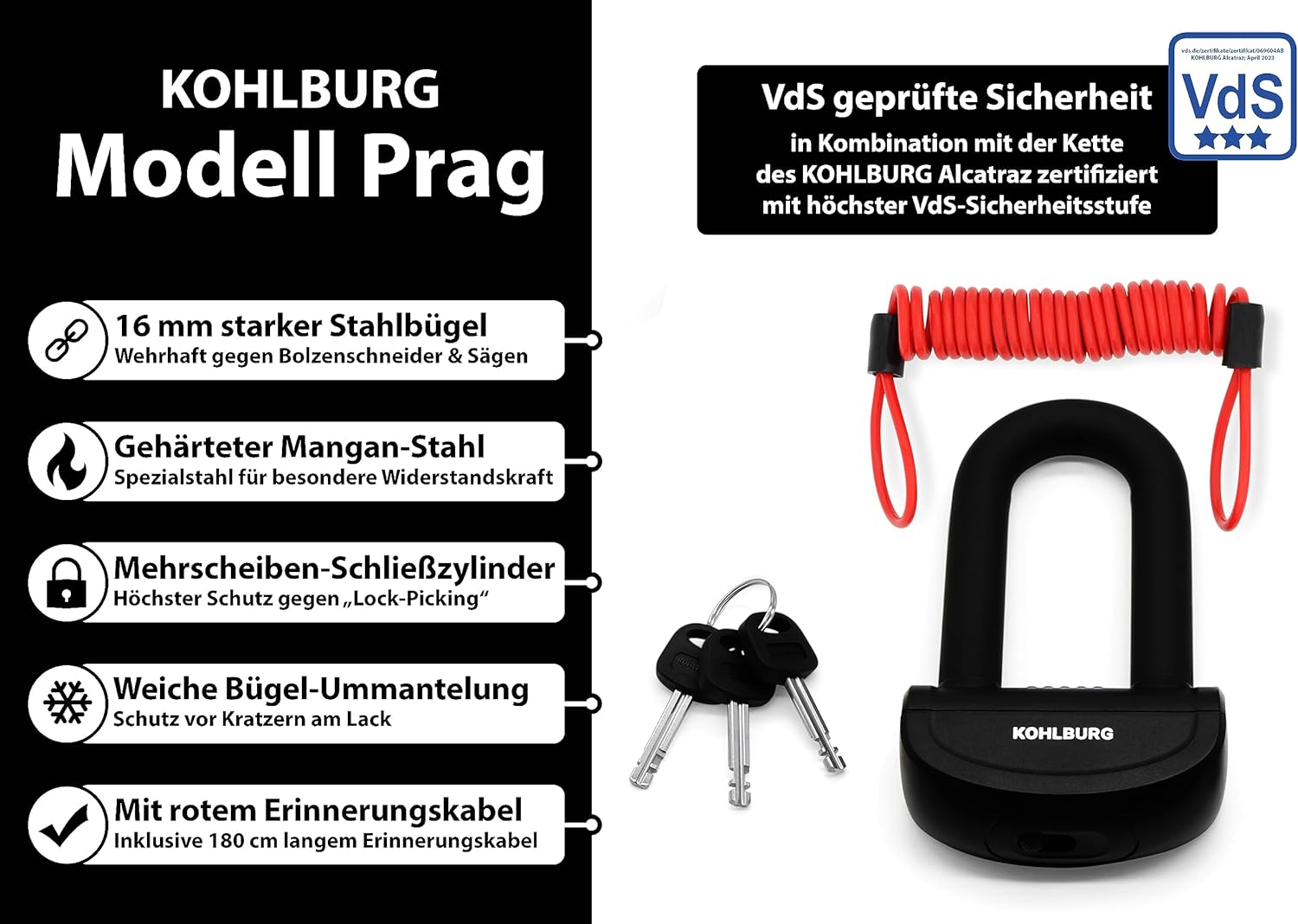 - SICHERSTES SCHLOSS IM TEST – Im Test des Motorrad-Fachmagazins “Tourenfahrer” hielt das Schloss am längsten gegen die Flex stand und konnte nicht von Bolzenschneider und Metallsägen geknackt werden (Ausgabe 12/2021 - ISSN 0933-440, 6 hochwertige