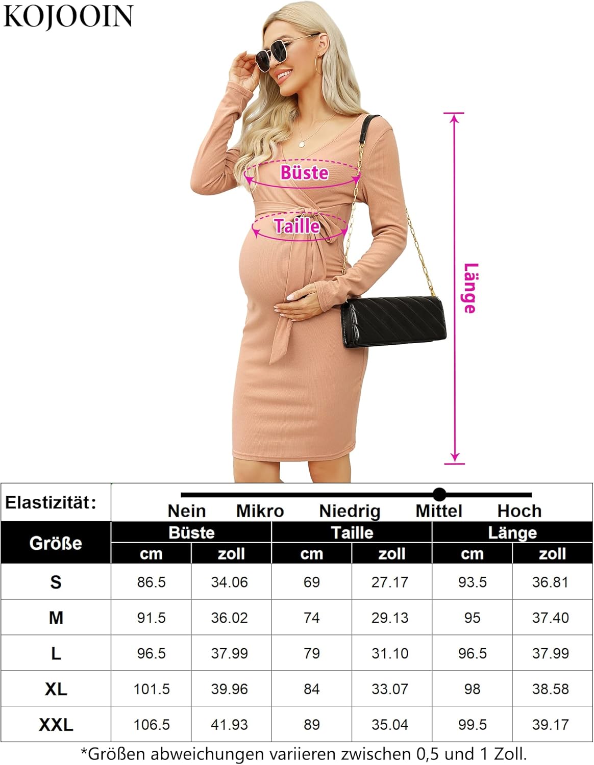KOJOOIN Damen Umstandskleid Enge Langarm Stillkleid V-Ausschnitt Schwangere Kleider Mutterschaft Sch
