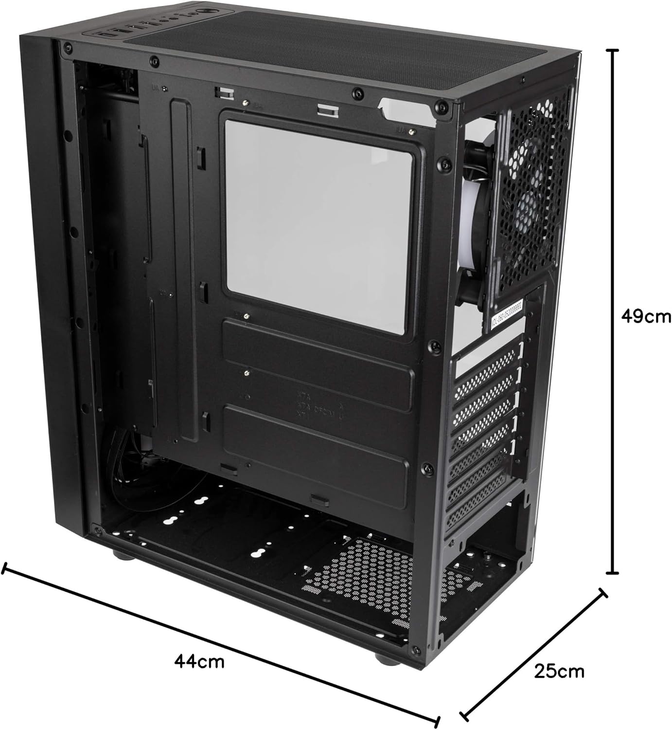 - PC GEHÄUSE MIT LÜFTER, PC GEHÄUSE FÜR WASSERKÜHLUNG; Ein vorinstallierter 120-Millimeter-Lüfter an der Rückseite mit digital adressierbaren RGB beleuchtung; Bis zu sechs 120-mm-Lüfter insgesamt möglich. Im Computergehäuse können wir auch