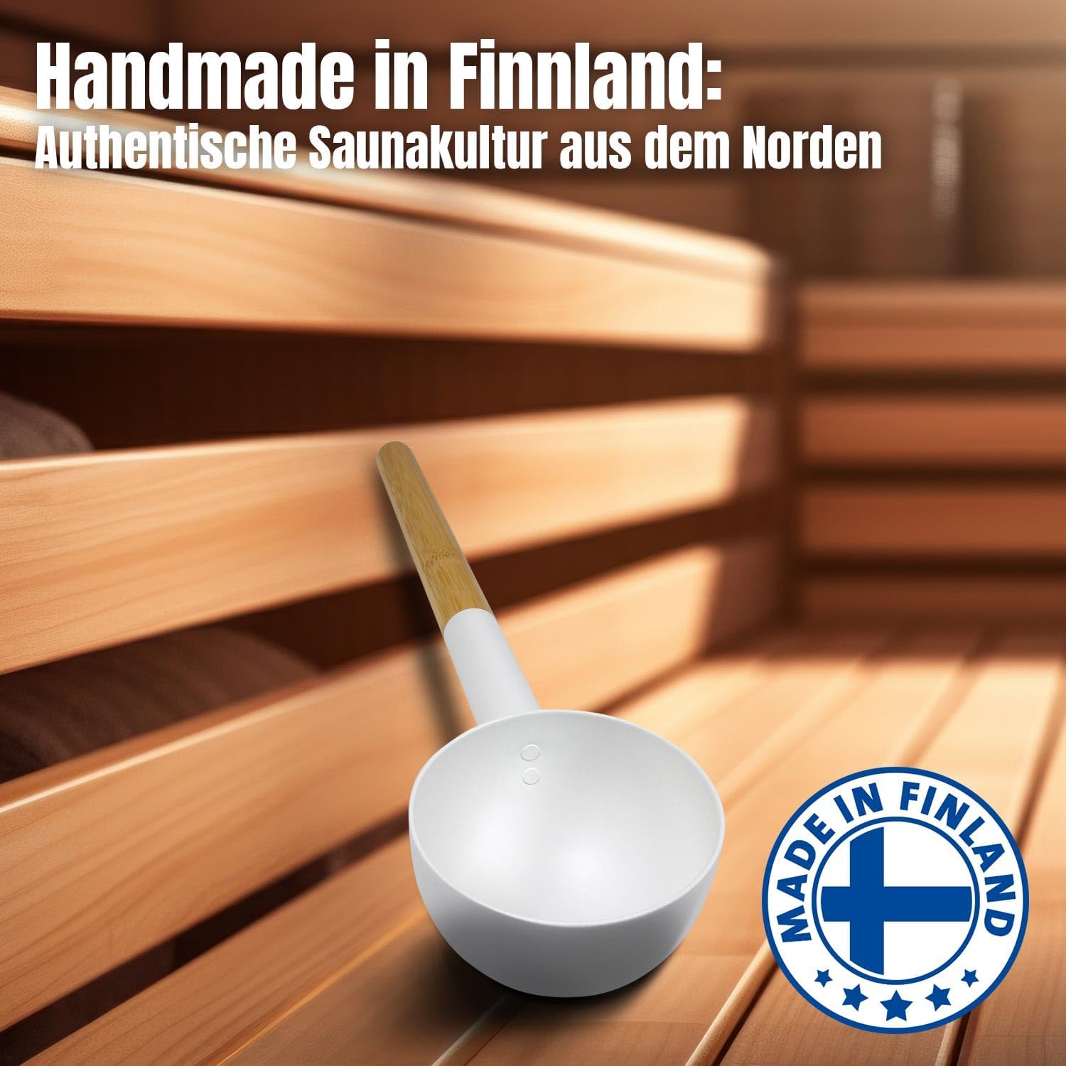 - PASSENDE AUFGUSSKELLE: Die 300 ml fassende Aufgusskelle mit einem extra langen Bambusgriff von 43 cm ermöglicht eine präzise Dosierung und sorgt für einen sicheren Abstand zu den heissen Steinen.