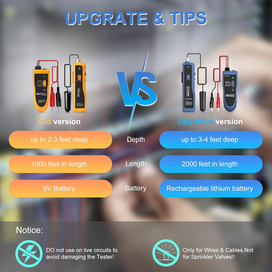 - đăWiederaufladbare Lithiumbatterieă Verwenden Sie eine wiederaufladbare 1100-mAh-Batterie zum Lokalisieren von Kabeln. Sender und EmpfĂ€nger werden beide von der wiederaufladbaren 3,7-V-Lithiumbatterie mit Strom versorgt, beide mit Anzeige fĂŒr