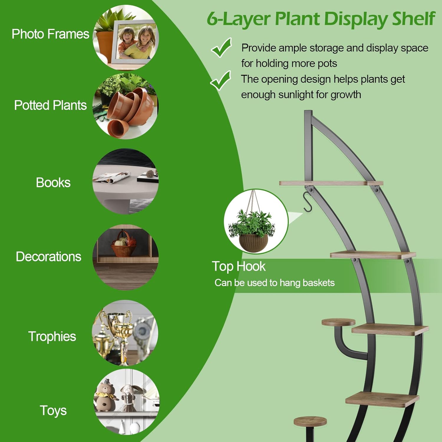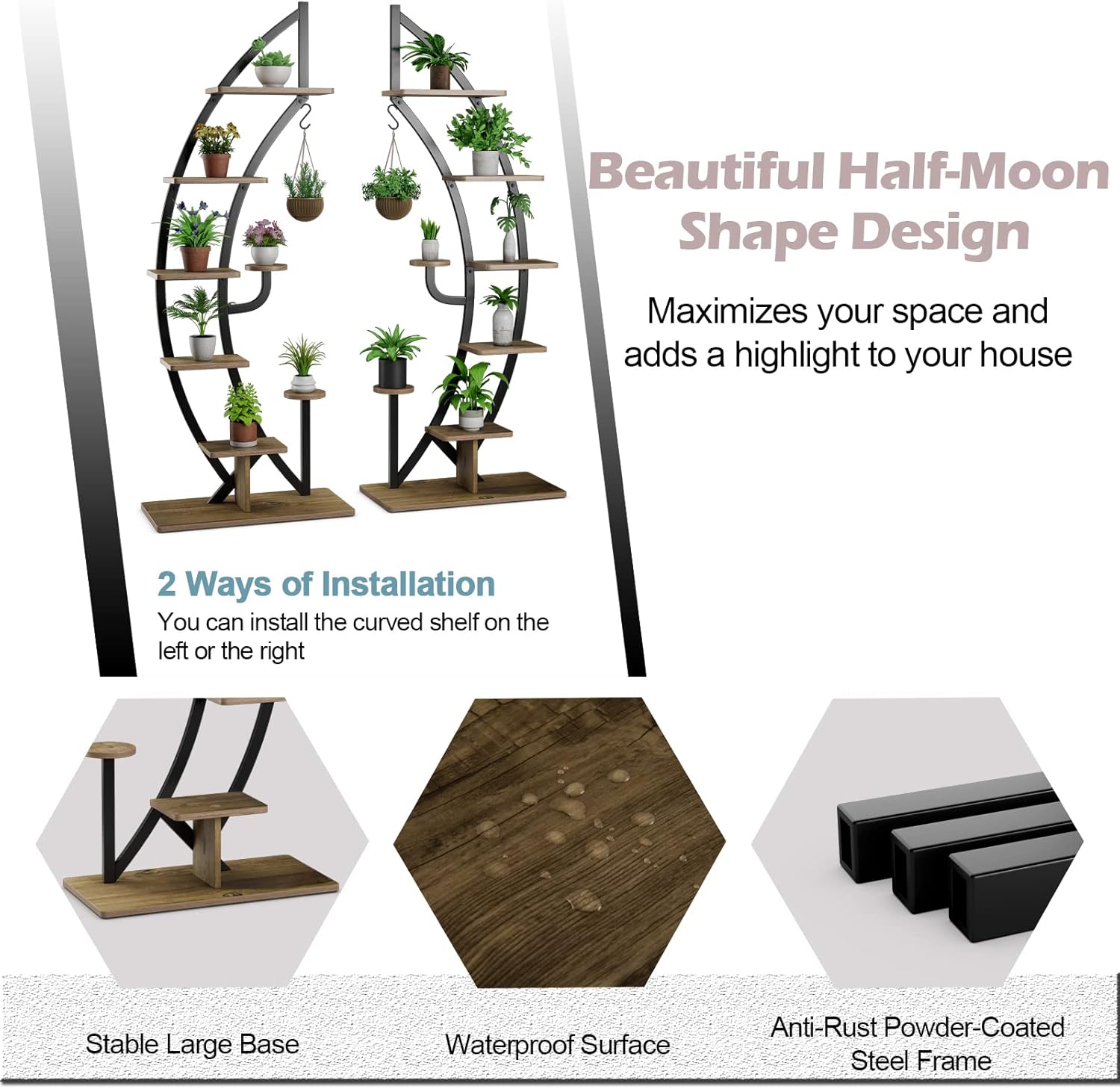 - 💐Modernes und modisches Aussehen: Wir entwerfen das Pflanzenregal als Bogen, und die beiden Blumengestelle können auch eine kreisförmige Struktur bilden, um die Ästhetik zu erhöhen.
