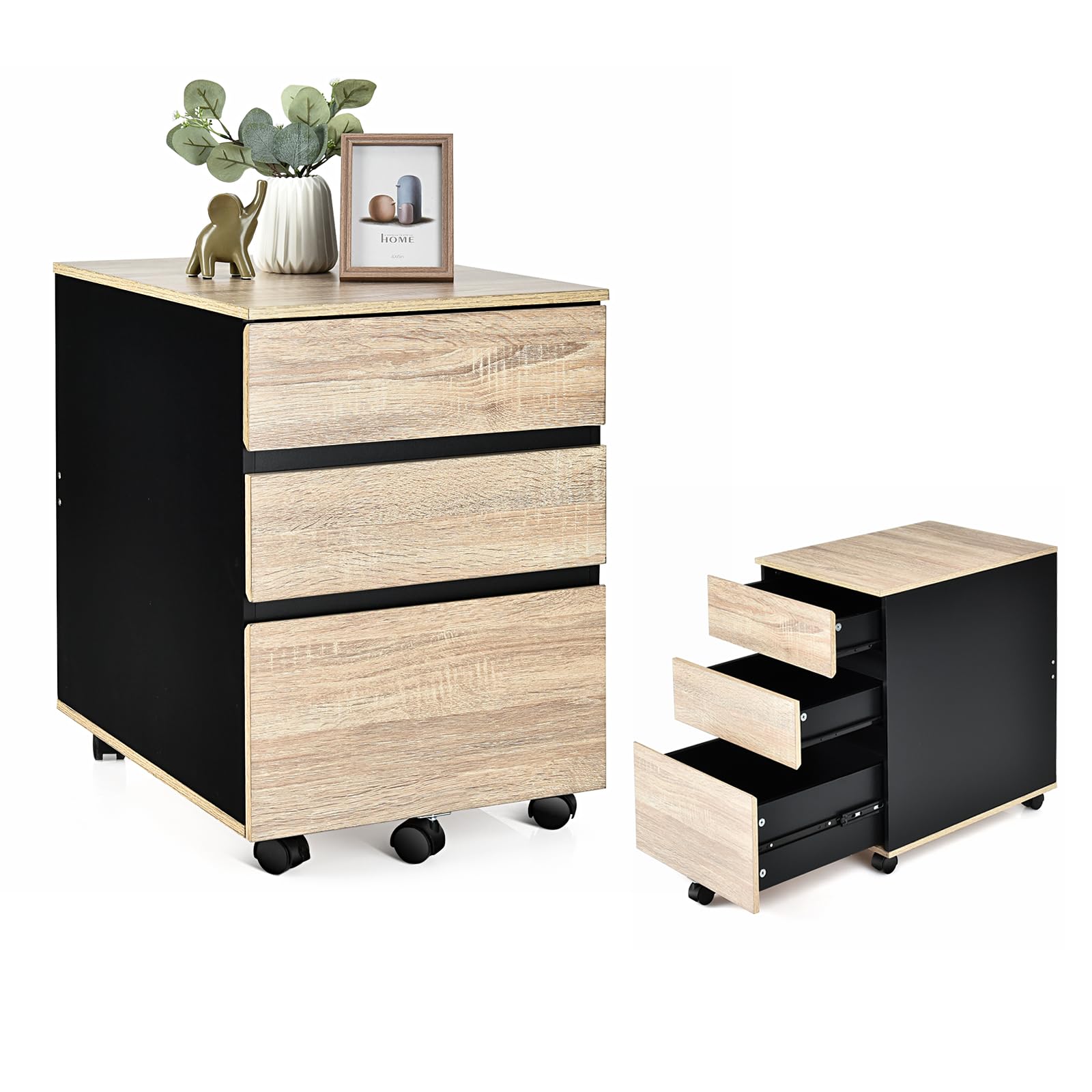 KOMFOTTEU Aktenschrank mit 5 Universalrollen, Rollcontainer mit 3 Schubladen, Bürowagen Büroschrank