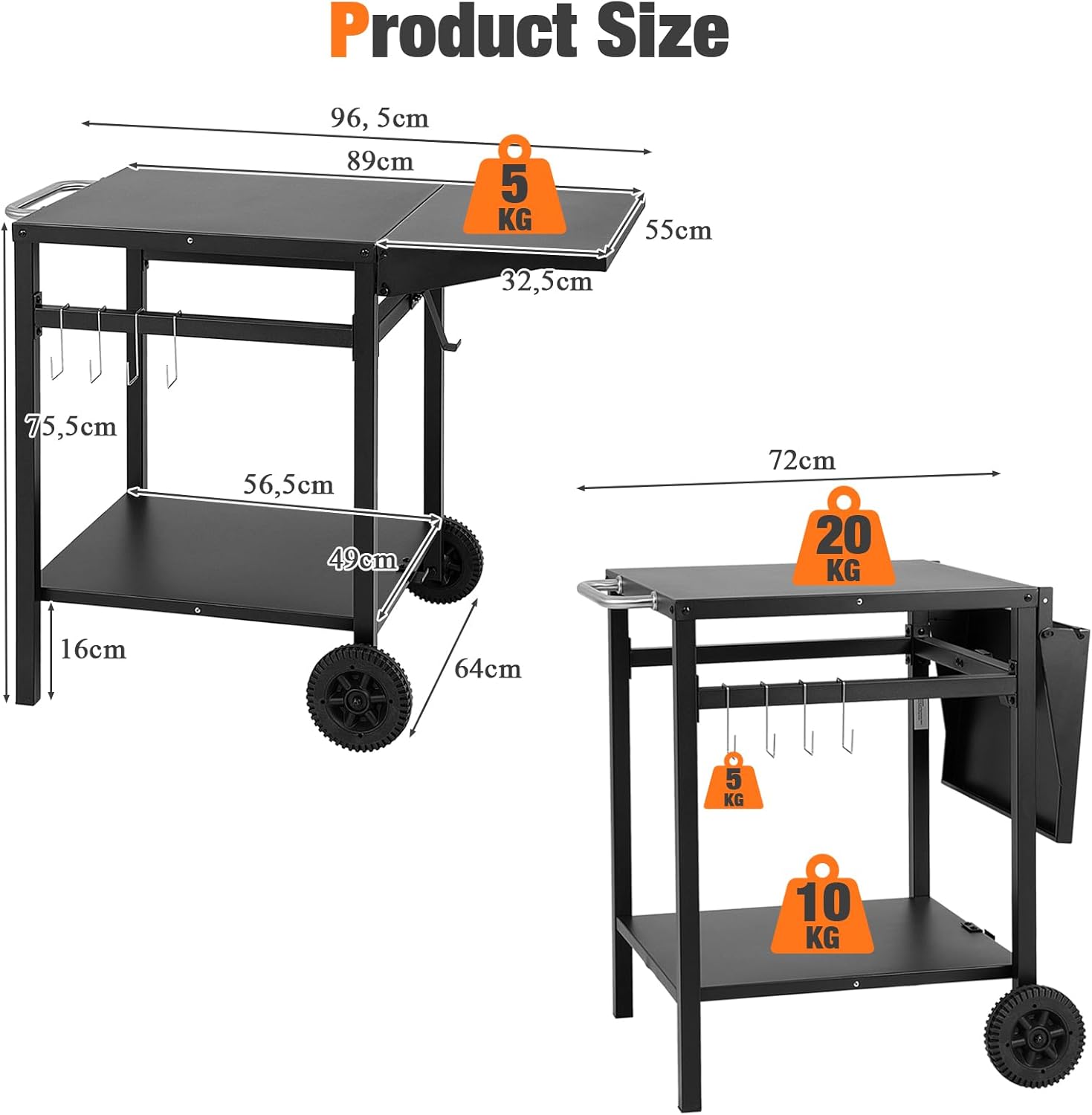 - 🥩FLEXIBLE MOBILITÄT: Die 2 PP-Rollen auf der Unterseite und die 2 Standfüsse machen den Esswagen sehr leicht zu bewegen und sorgen für ausreichende Stabilität während des Gebrauchs. Ob beim Picknick im Freien, beim Grillen oder zu Hause, es ist