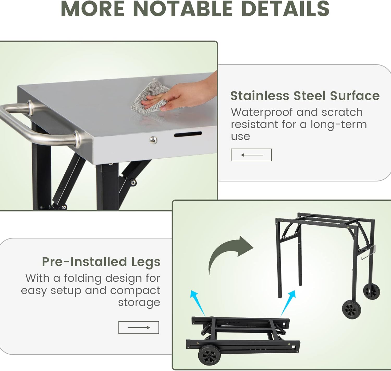 - 🦐ROBUSTES DESIGN: Dieser Grillwagen bietet eine grosse Arbeitsplatte aus Edelstahl für Langlebigkeit und einfache Reinigung. Mit seinem glatten und rostbeständigen Design ist es perfekt für die effiziente Zubereitung von Fleisch, Gemüse und Obst.