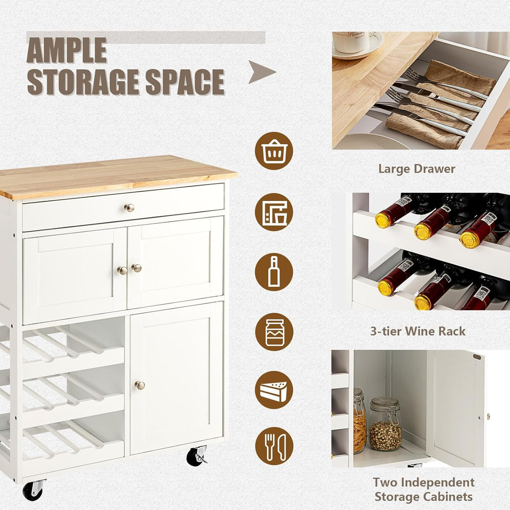 KOMFOTTEU Küchenwagen auf Rollen, Kücheninsel mit Weinregal & 2 Schränke & Schublade, Servierwagen a
