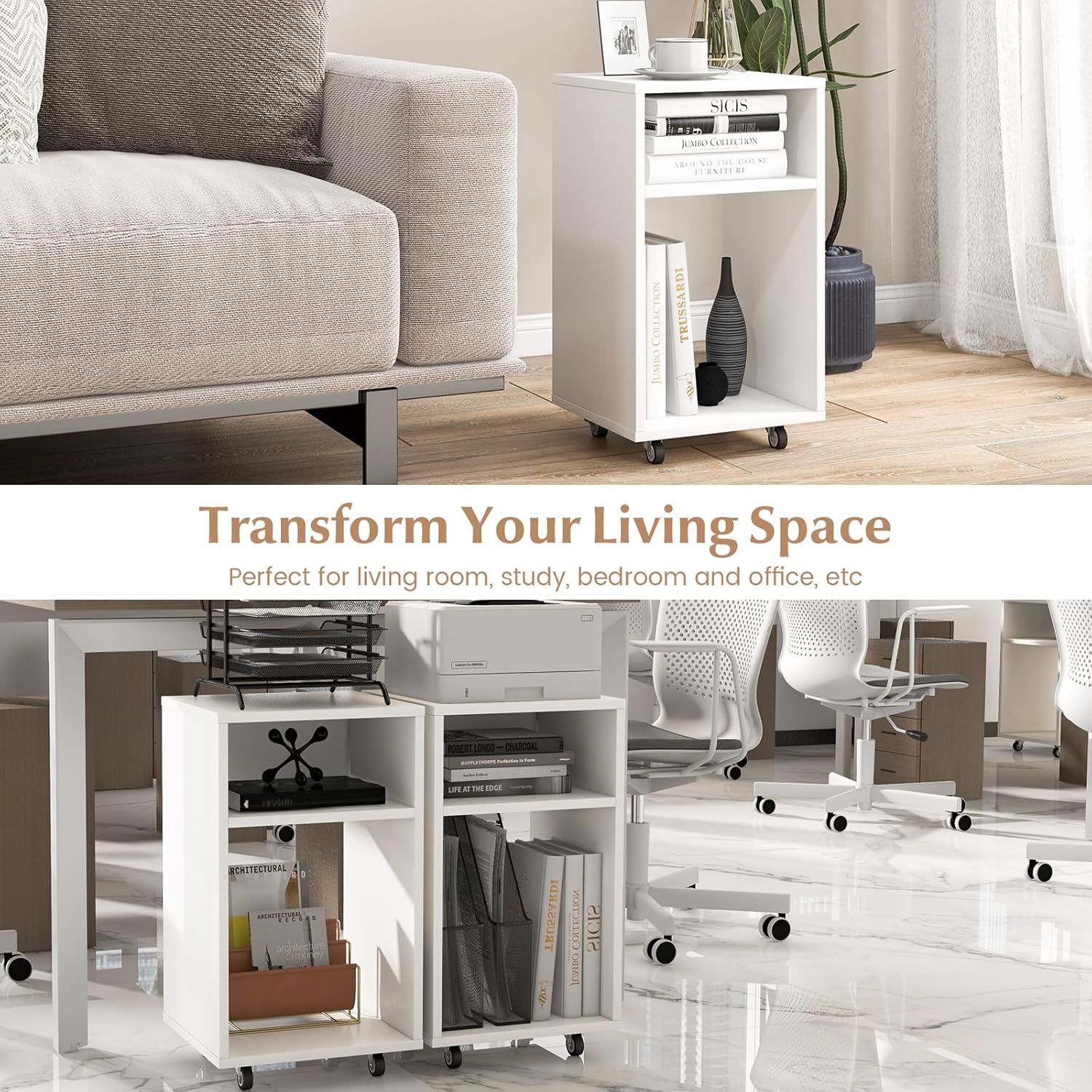 - BRINGEN SIE SCHÖNHEIT IN IHR ZUHAUSE: Dieser mobile Aktenschrank kann als multifunktionaler Druckerständer, Ausstellungsschrank oder Aufbewahrungsschrank verwendet werden. Mit seinem modernen Stil und eleganten Design fügt sich dieser Druckerwagen