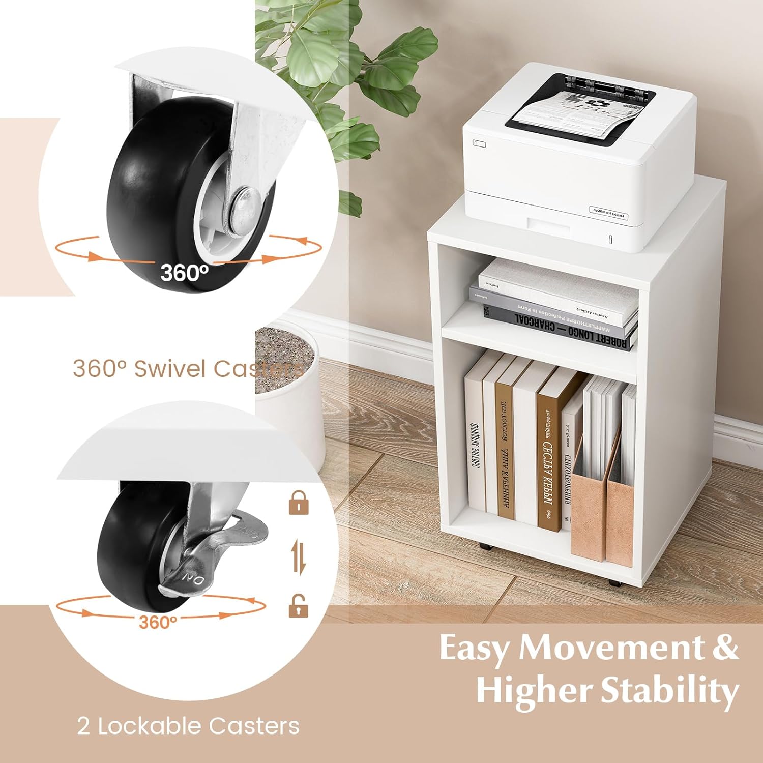 - LEICHTGÄNGIG UND FESTSTELLBAR: Der Druckerständer verfügt über 4 360°-Lenkrollen, von denen 2 feststellbar sind, und ist somit leicht zu bewegen und flexibel einsetzbar.