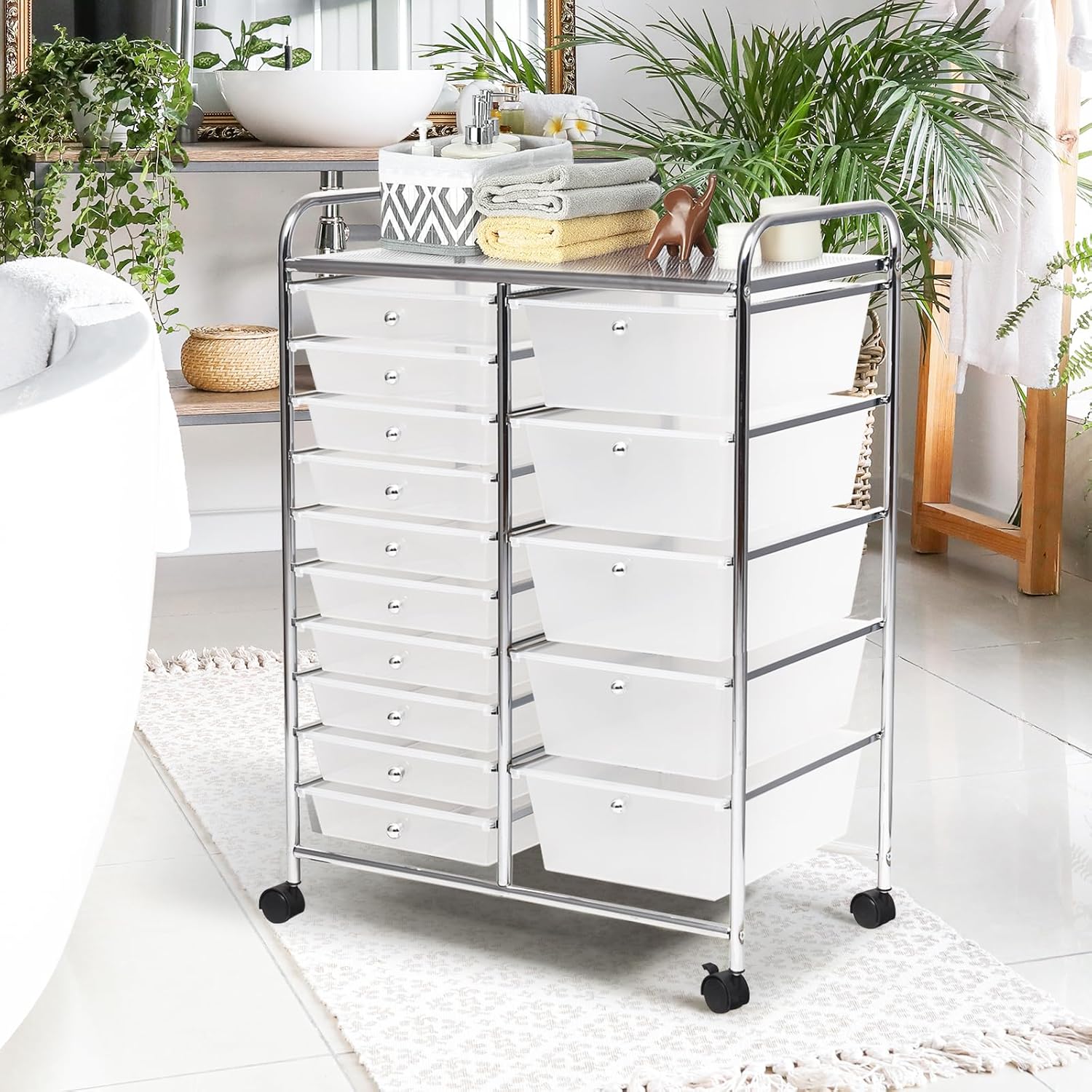 - 💓AUSREICHEND PLATZ: Der Beistellwagen enthält 10/15 Schubladen und eine Werkbank, die Ihnen genügend Platz zum Sortieren und Aufbewahren Ihrer Gegenstände bietet, Sie können die Schubladen auch stapeln, um Ihre Gegenstände zu lagern.