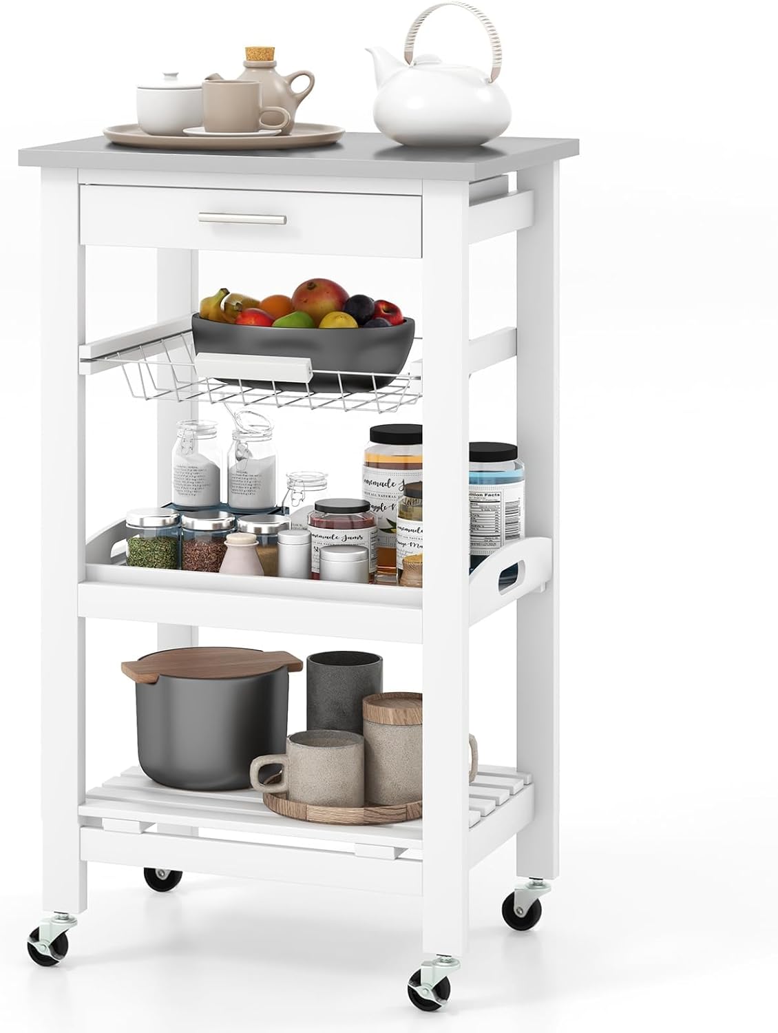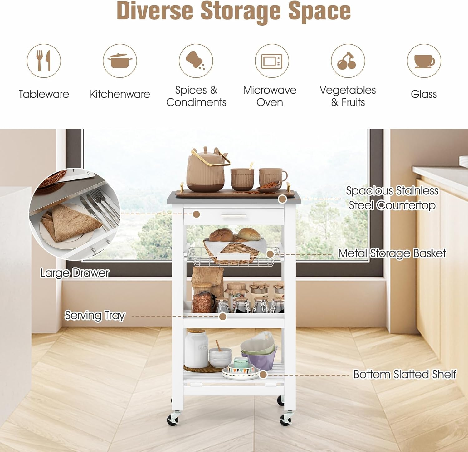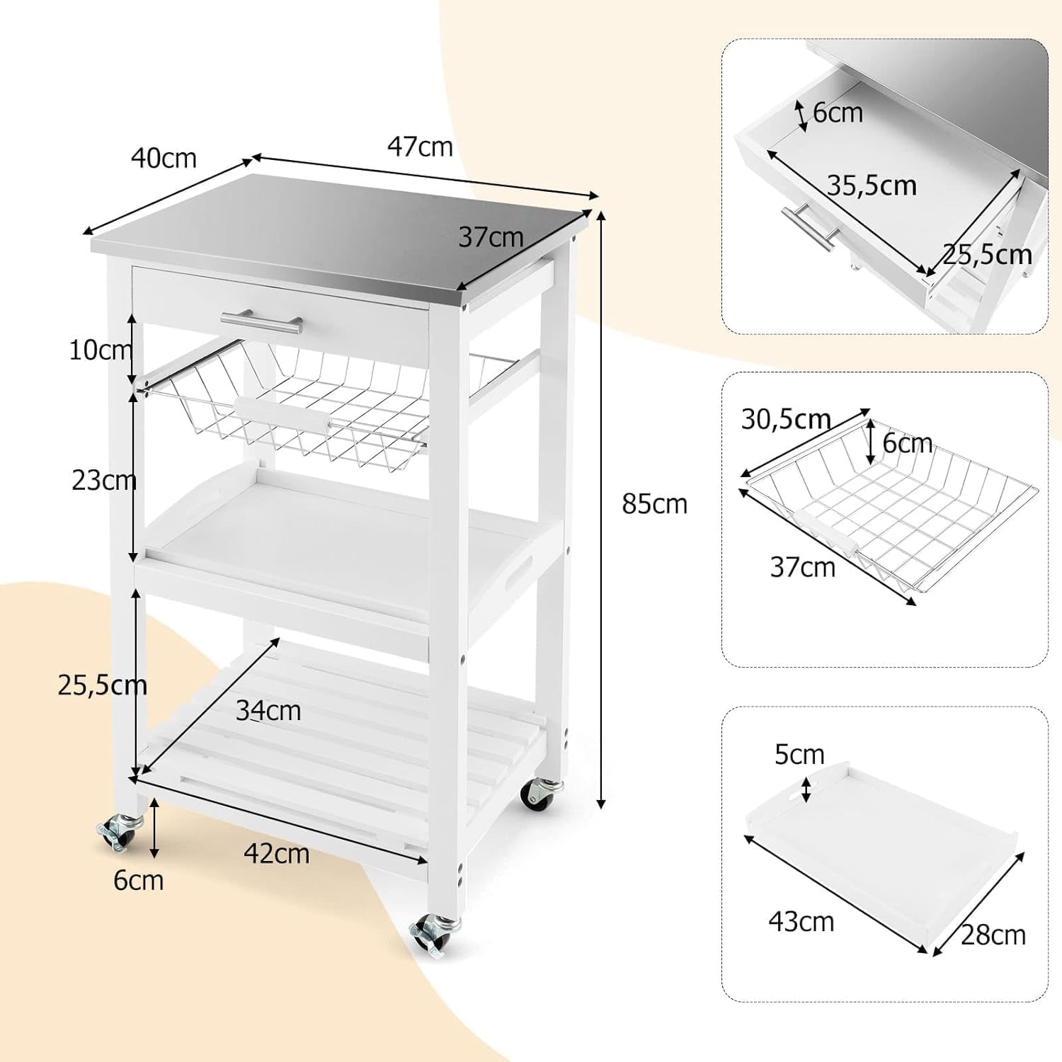 - 🥂GERÄUMIGER STAURAUM: Dieser Küchenwagen verfügt über eine breite Arbeitsplatte, eine Schiebeschublade, einen Metallkorb, eine abnehmbare Servierplatte und ein offenes unteres Regal für ausreichend Stauraum.
