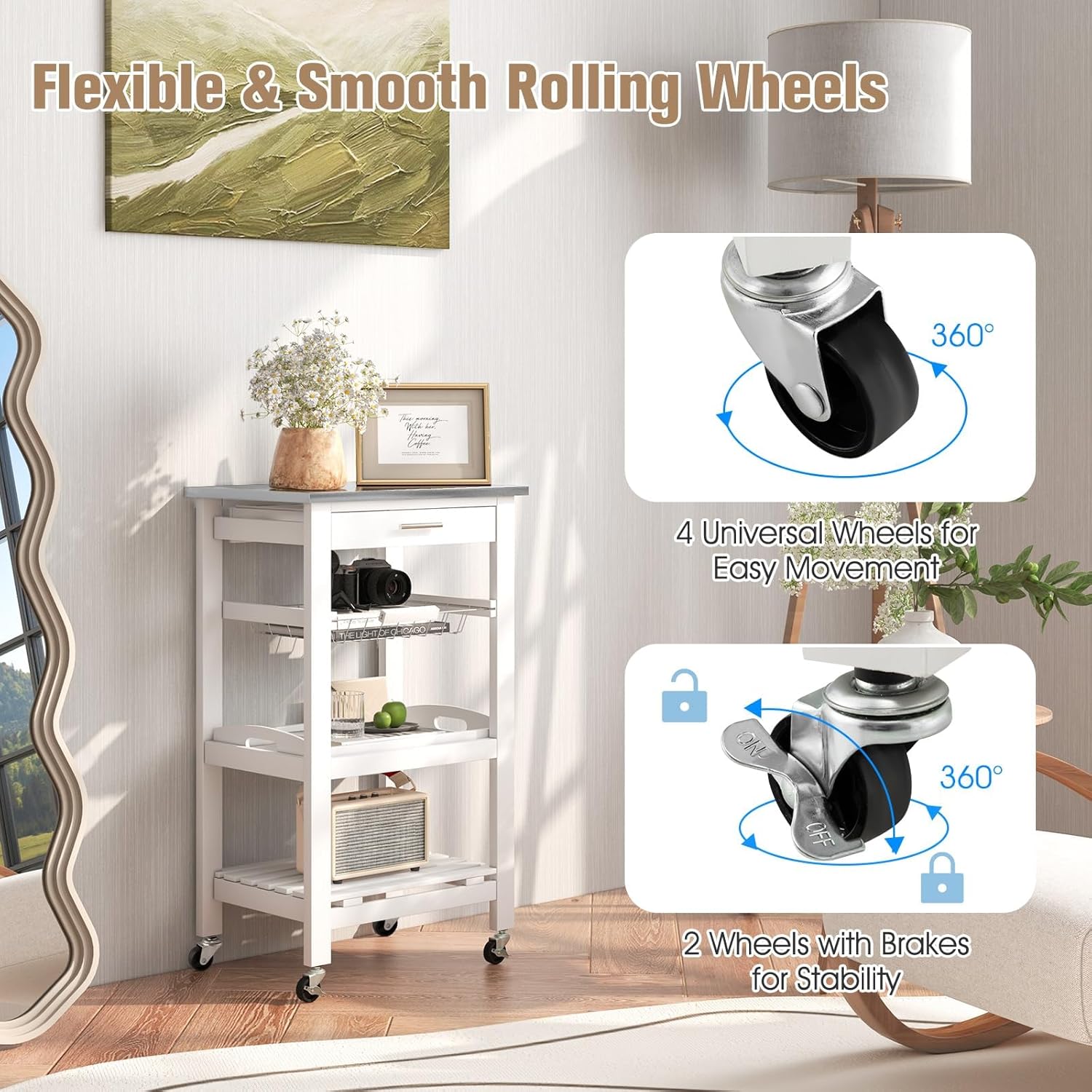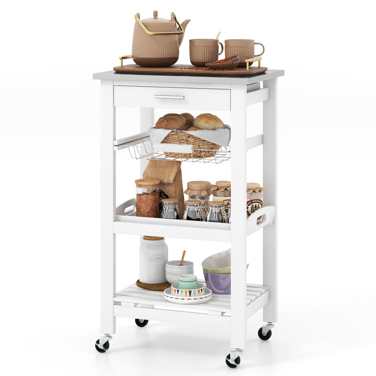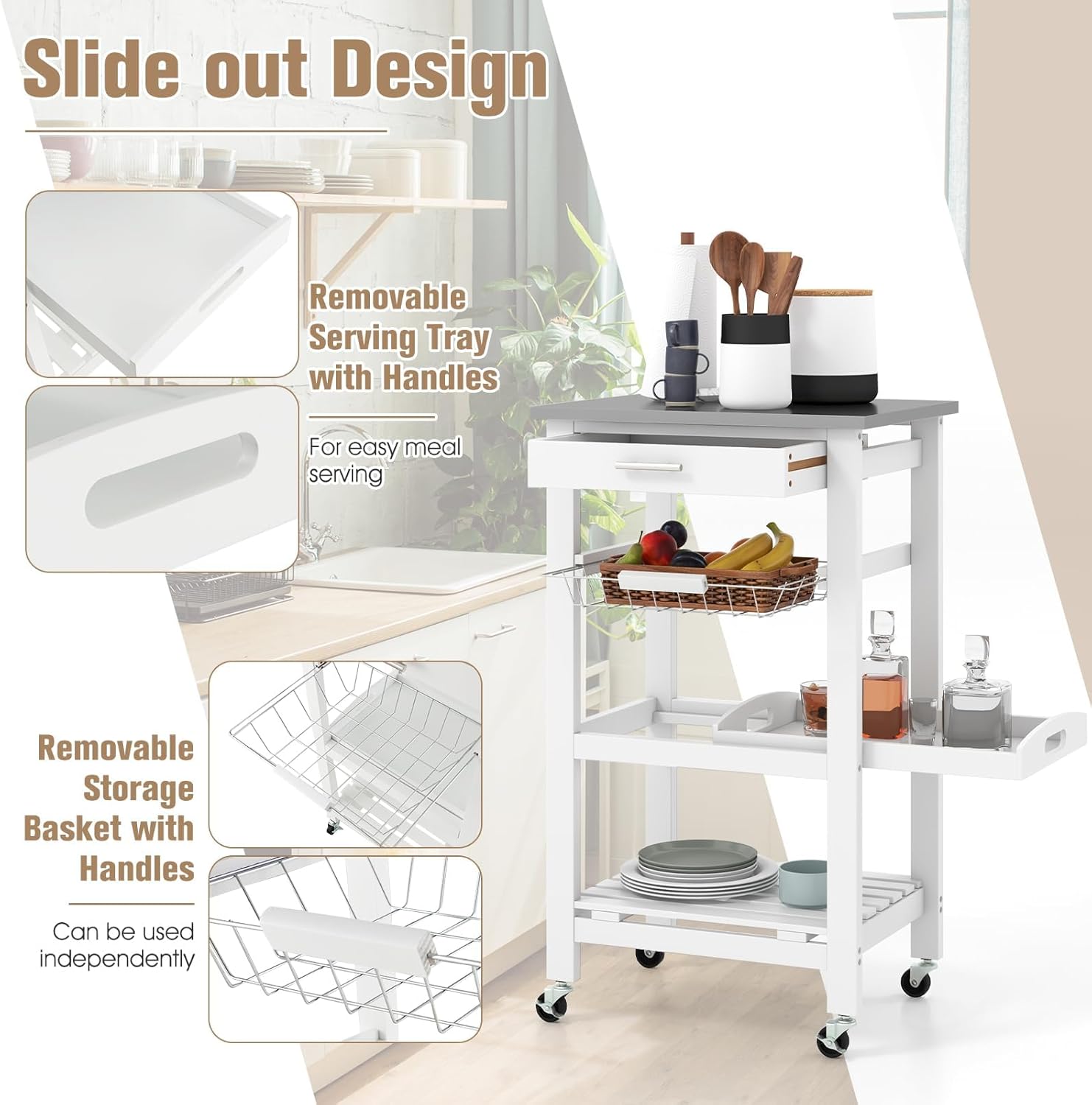 - 🥂GERÄUMIGER STAURAUM: Dieser Küchenwagen verfügt über eine breite Arbeitsplatte, eine Schiebeschublade, einen Metallkorb, eine abnehmbare Servierplatte und ein offenes unteres Regal für ausreichend Stauraum.
