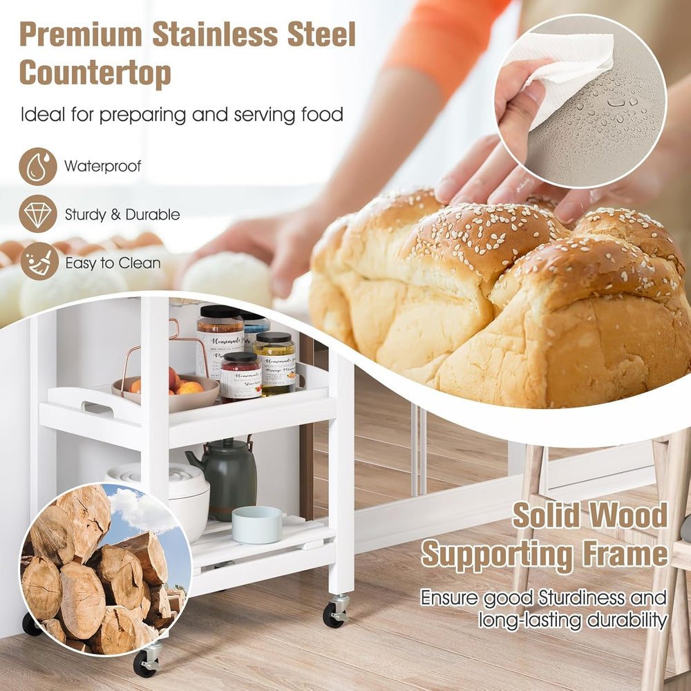 - 🥂STABILITÄT UND ROBUSTHEIT: Die Arbeitsplatte des Küchenwagens besteht aus hochwertigem Edelstahl, was nicht nur eine hervorragende Haltbarkeit und einfache Reinigung gewährleistet, sondern auch für eine lange Lebensdauer sorgt. Der Fuss aus