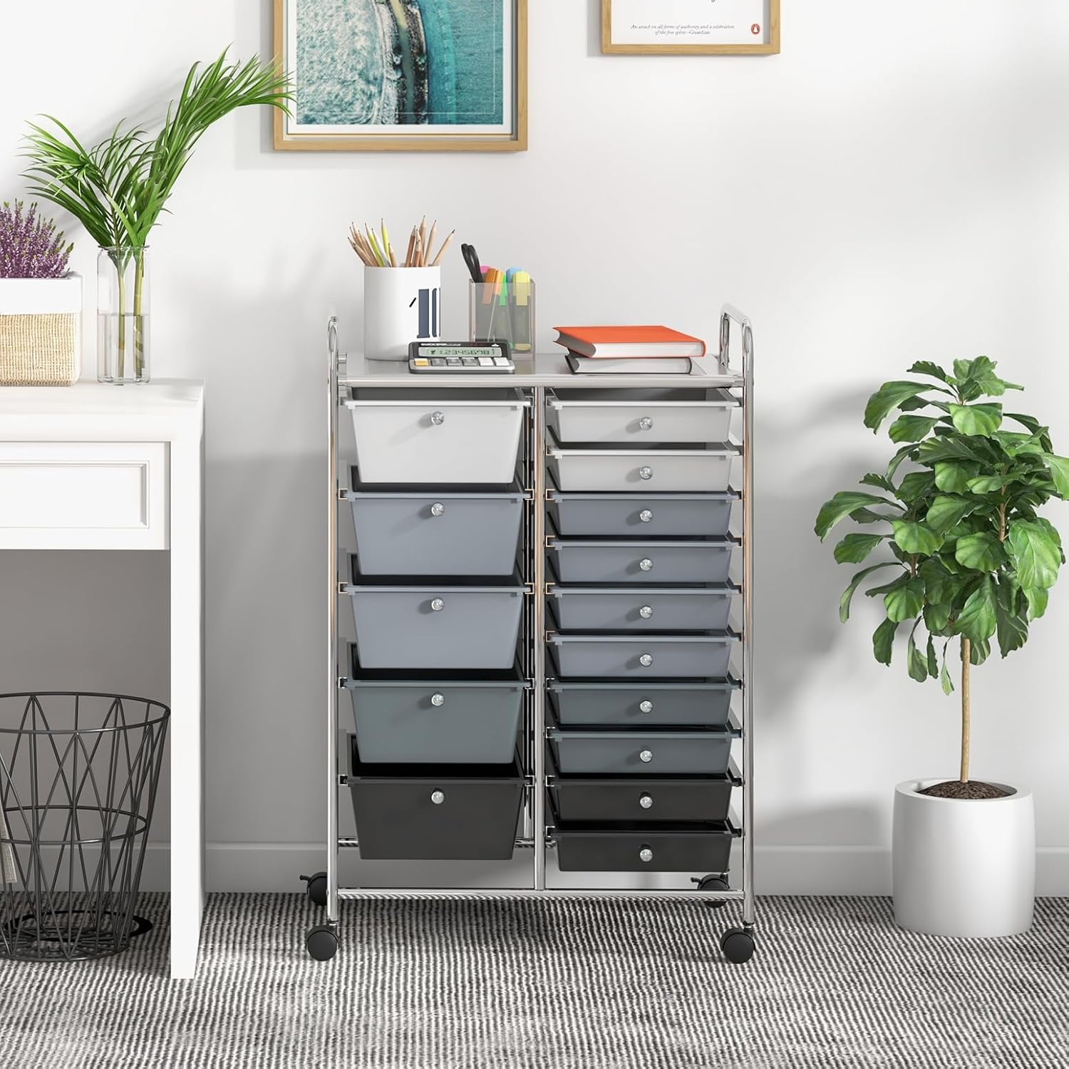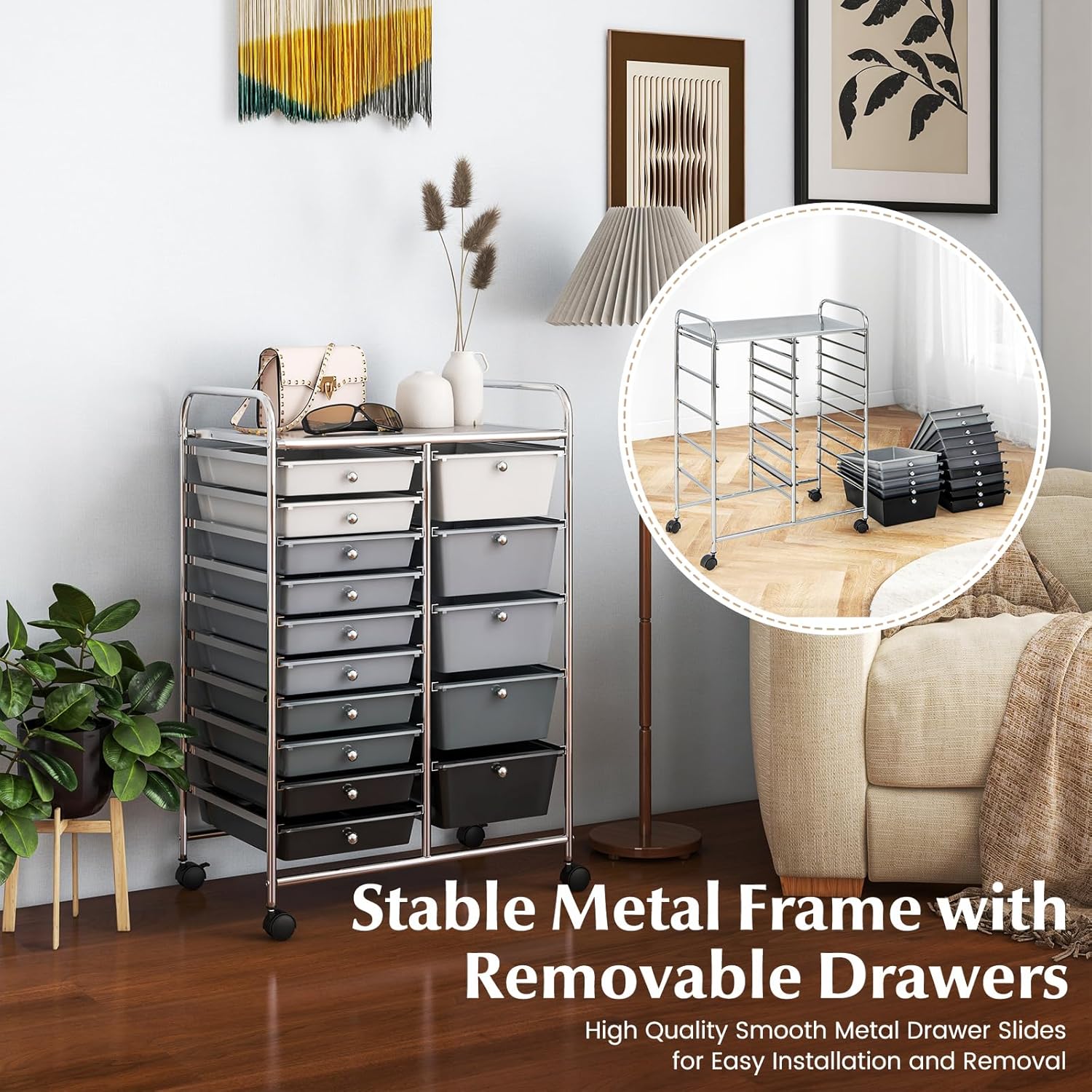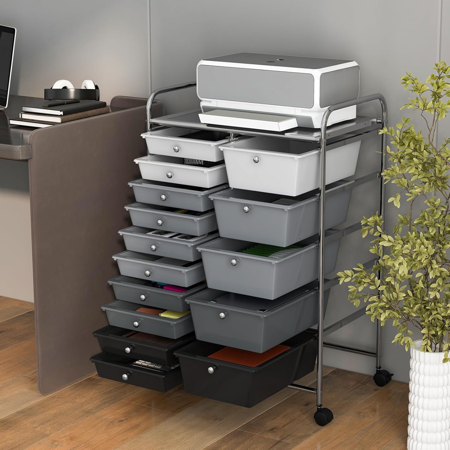 - 💓AUSREICHEND PLATZ: Der Beistellwagen enthält 10/15 Schubladen und eine Werkbank, die Ihnen genügend Platz zum Sortieren und Aufbewahren Ihrer Gegenstände bietet, Sie können die Schubladen auch stapeln, um Ihre Gegenstände zu lagern.
