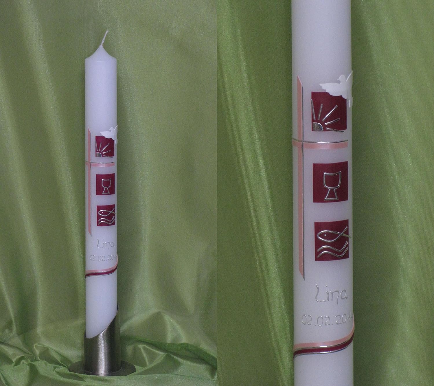 Kommunionkerze/Taufkerze in 40 x 4 cm, inklusive Beschriftung ! P 5/1