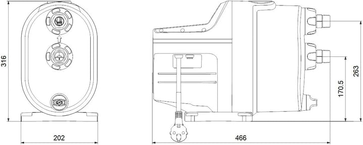 - Kompakte Druckgruppe SCALA1 3-35 BVBP, Nennleistung 3,72 m³/h, 0,45 kW, 3,27 A, Nennhöhe 20 m, 46,6 x 20,2 x 31,6 cm, schwarz (99530404)