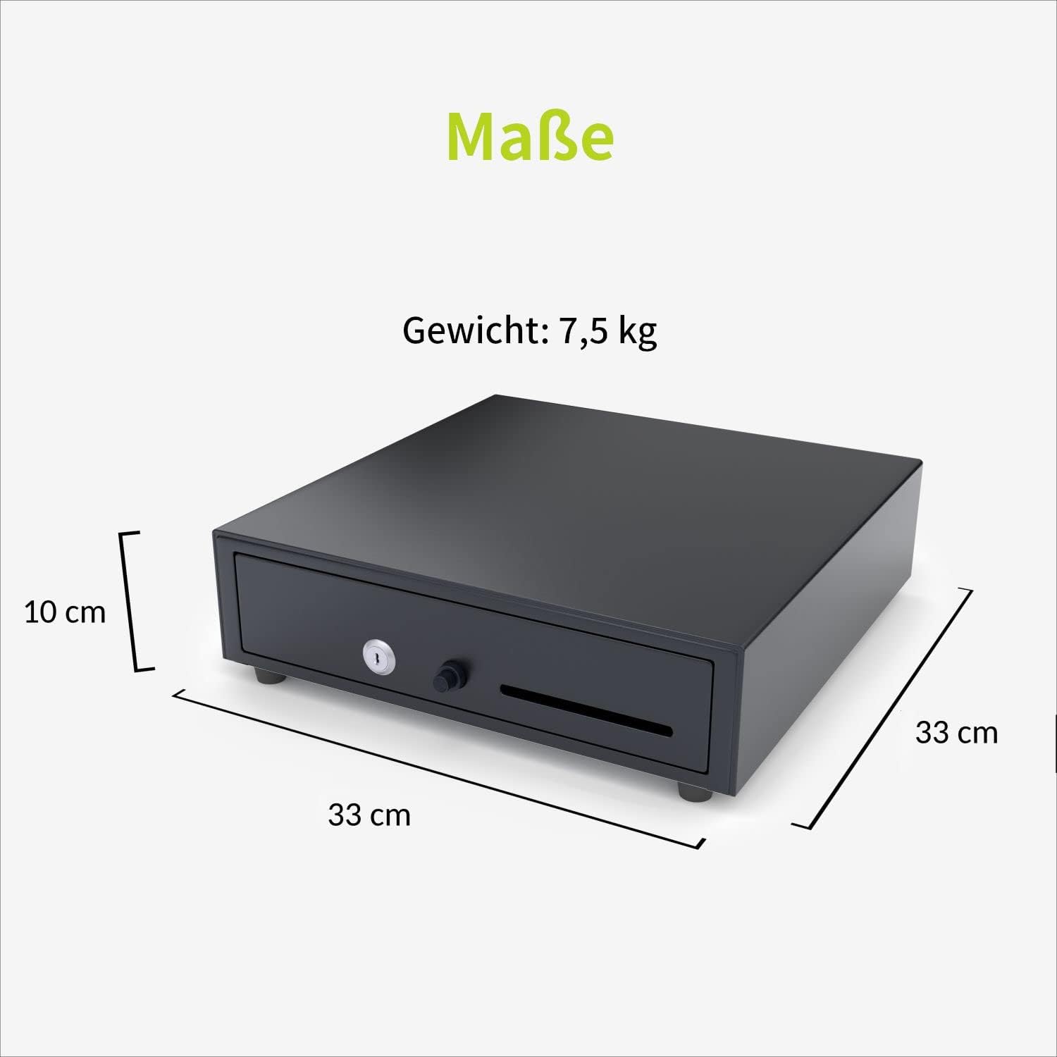 - Kassenlade Unterbau - Die Geldschublade lässt sich mit ihren kompakten 33 x 33 cm ganz einfach als Unterbau unter Ihrer Theke oder Tisch anbringen. Die hierfür nötigen Schienen bieten wir ebenfalls an