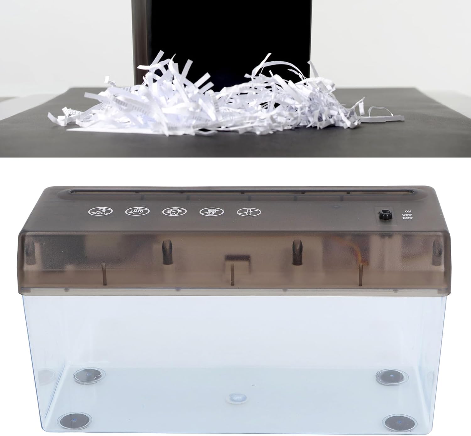 - [Kompaktes Design Paper Shredder] Mit seiner kompakten Struktur benötigt dieser elektrische Aktenvernichter nur minimalen Stauraum und kann problemlos auf Tischen, Regalen oder kleinen Flächen aufgestellt werden, was ihn ideal für Büros, Schulen und