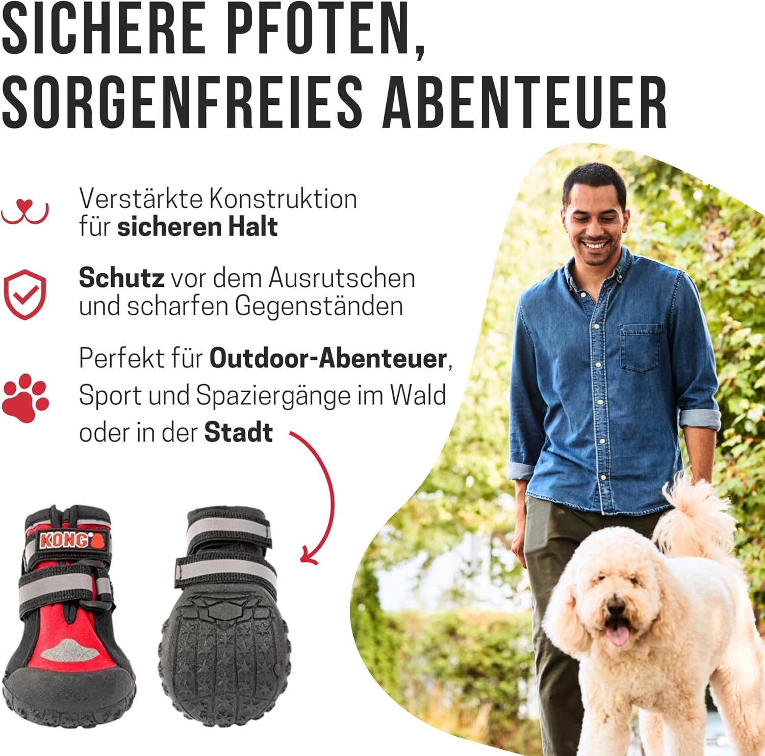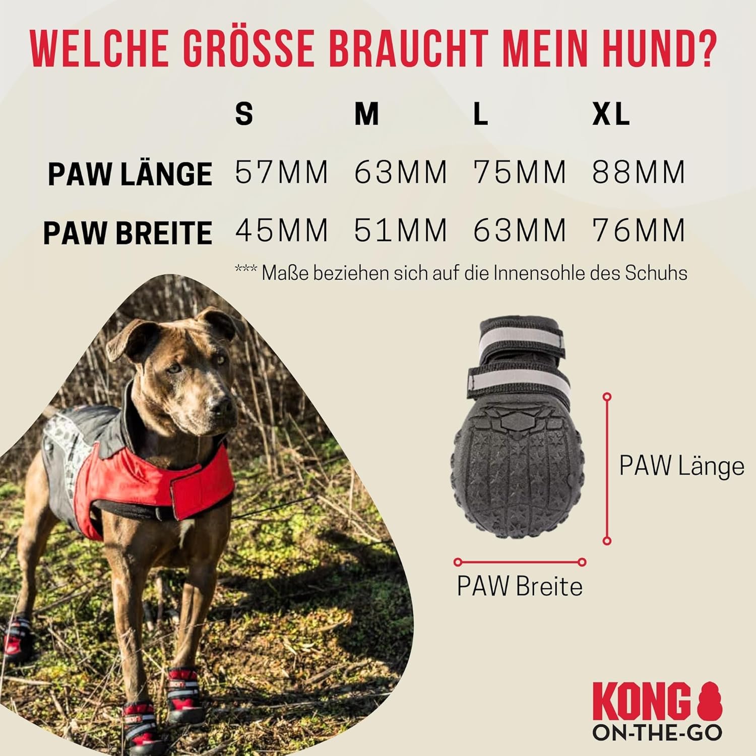 - VERSCHIEDENE GRÖssEN - Die leicht anzuziehenden Pfotenschuhe von KONG gibt es für Deinen Vierbeiner in vier Grössen. Wähle je nach Rasse & Grösse die passenden Schuhe für Deinen Hund, um den Tragekomfort zu erhöhen.