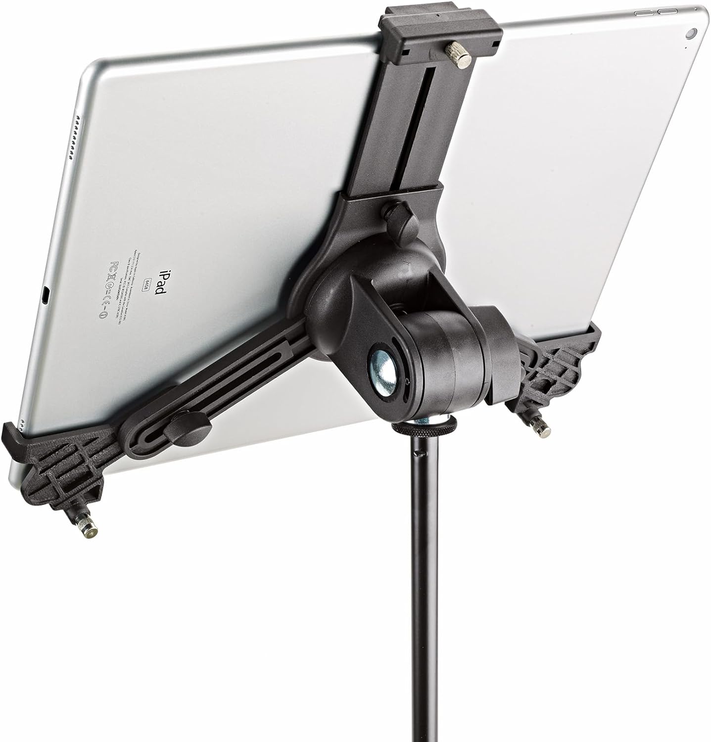 - Ausführung - Die 19790 ist eine praktische Halterung für Ihr Tablet, mit der sich diverse Gerät gängiger Marken hoch oder quer sicher auf Stativen befestigen lässt. Sie ist um 90° drehbar.