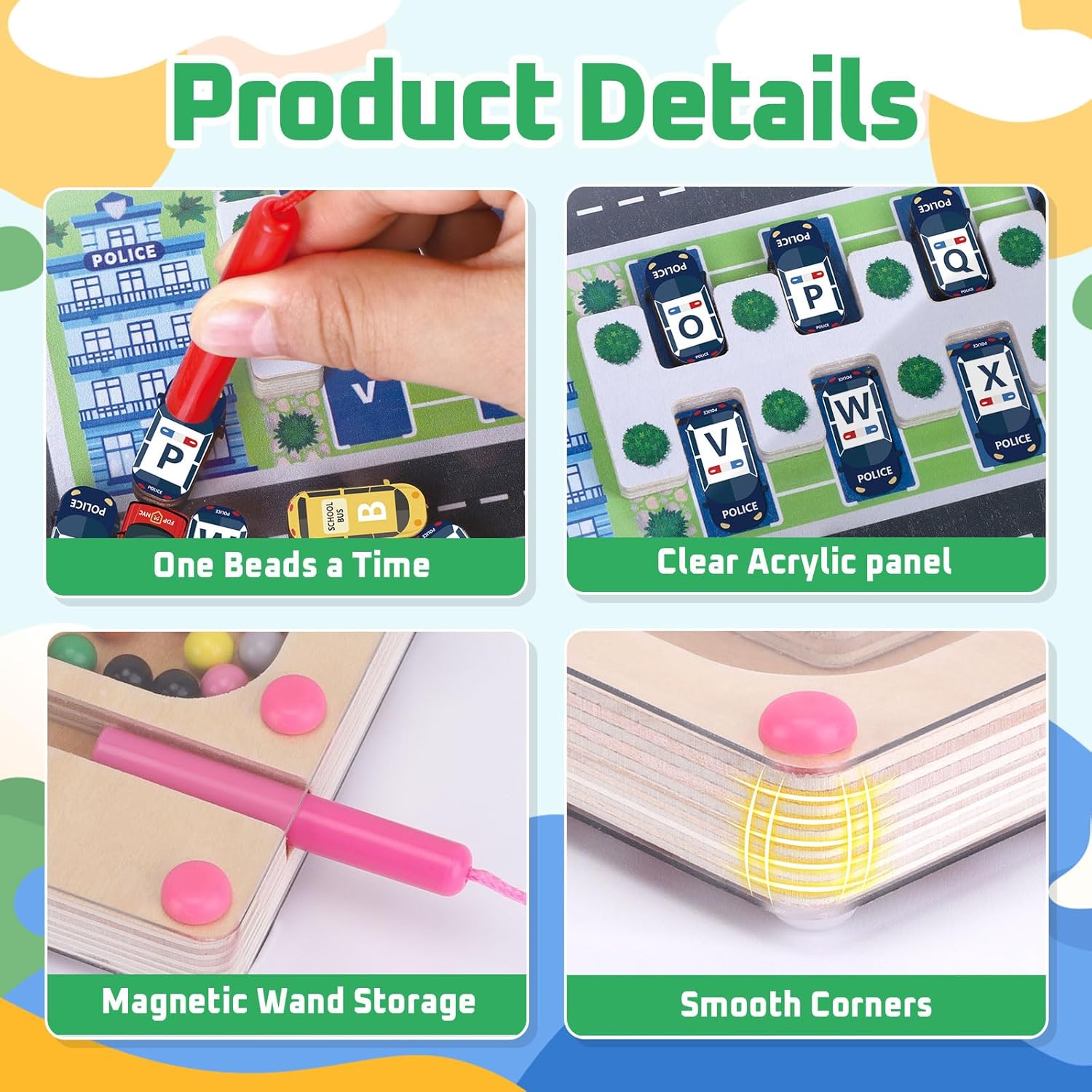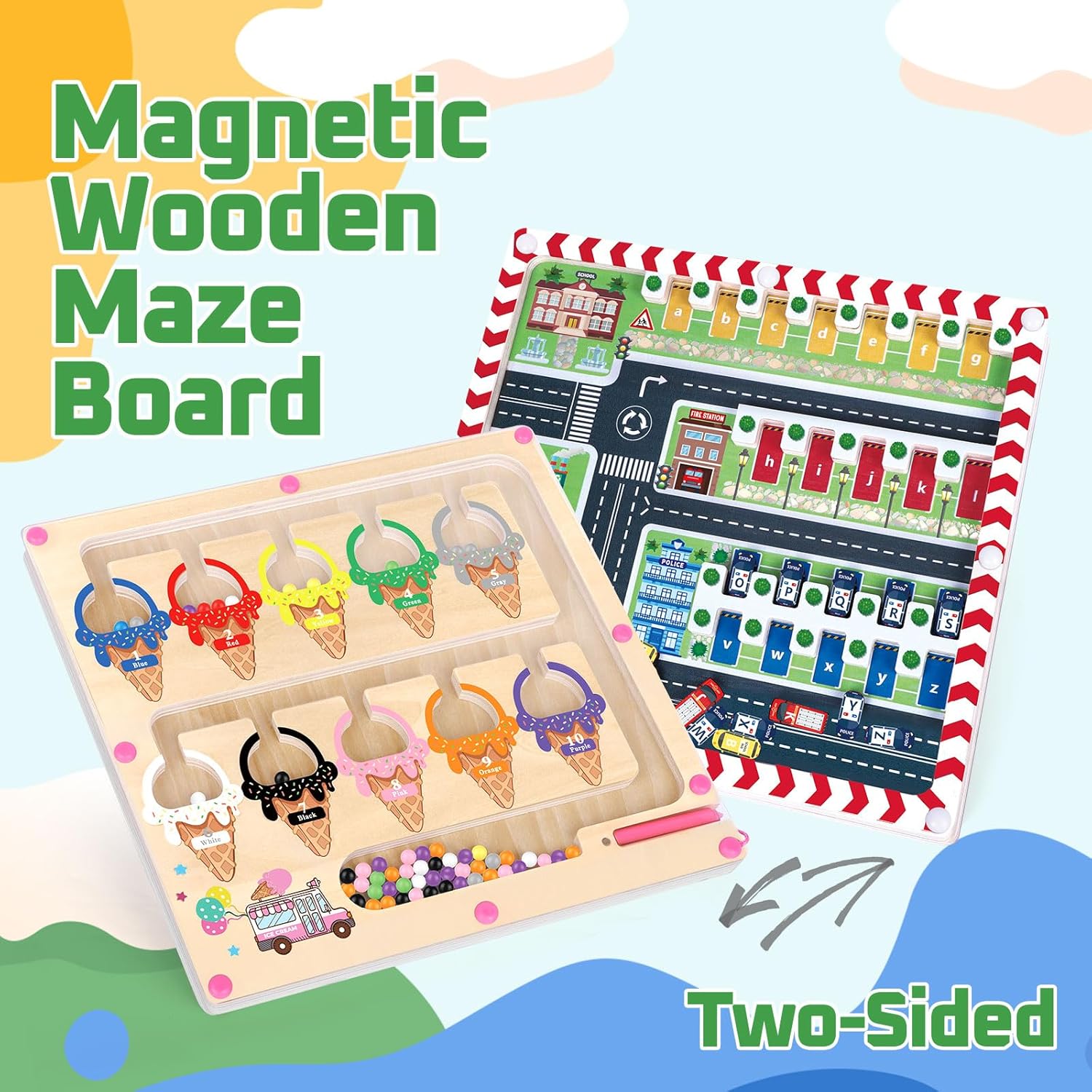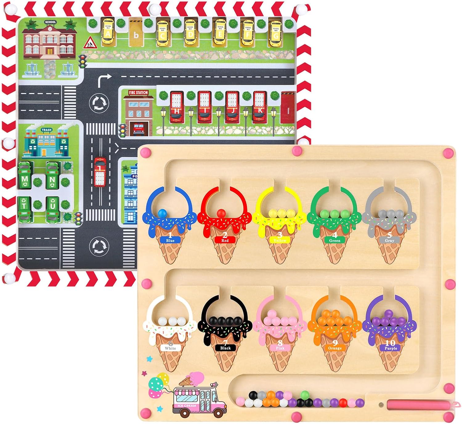 - 【Verbessertes 3-in-1-Labyrinth mit Buchstaben, Zahlen und Farben】 Eiscreme-Thema: Das Magnete Spielzeug Kinder ist wie ein Eiscreme-Labyrinth gestaltet. Jedes Eis ist in leuchtenden Farben gehalten und die verschiedenfarbigen Eissorten entsprechen