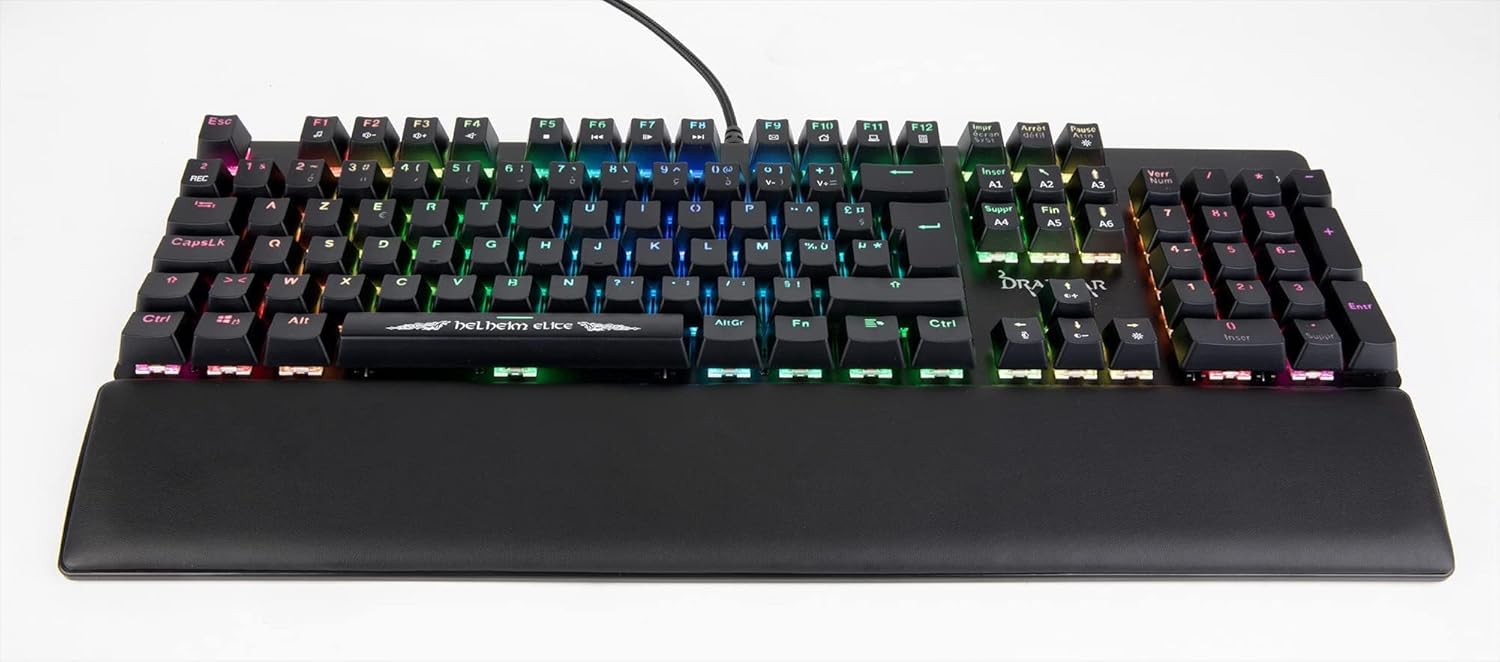 - [MECHANISCHE SWITCHES]: Alle Tasten der Tastatur sind mit mechanischen Switches ausgestattet, die eine schnellere Reaktionszeit als eine Standardtastatur ermöglichen. Die roten Switches sind leicht und leise und ermöglichen eine optimale Reaktionszeit.