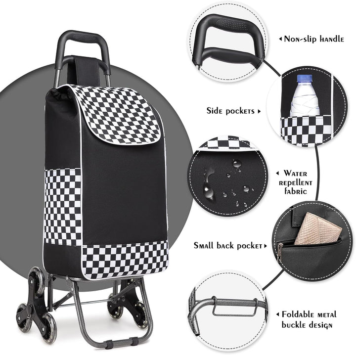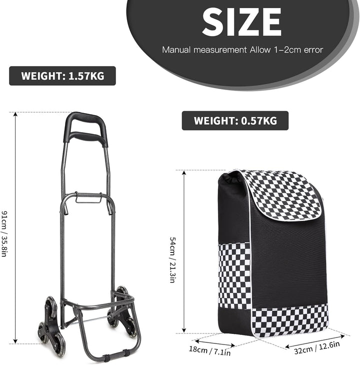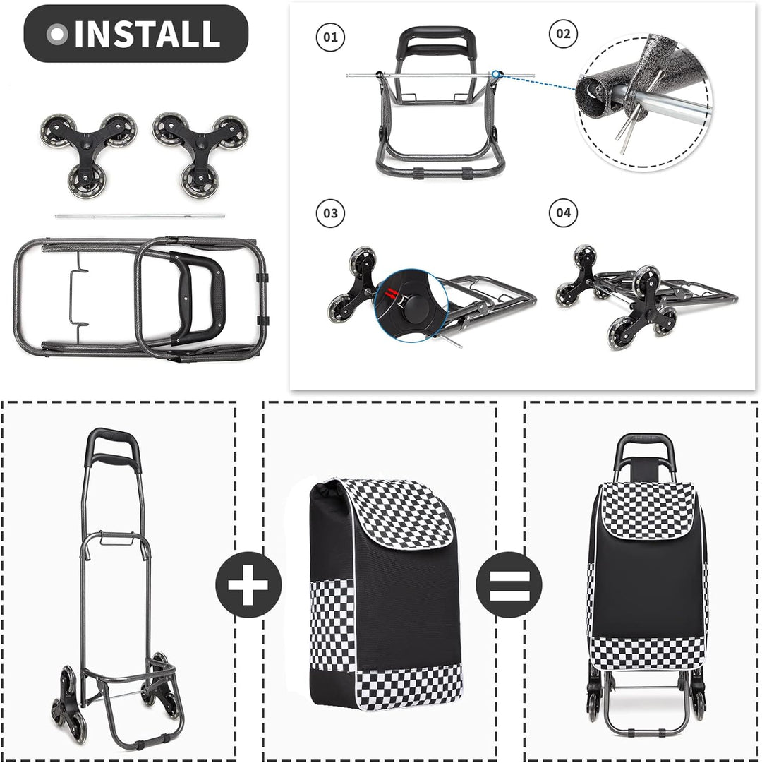 - Einfaches Treppensteigen-Design: Drei schwenkbare Räder auf jeder Seite wurden speziell für die Treppensteigfähigkeit des Einkaufswagens entwickelt, wodurch der Treppenwagen leicht auf und ab gleiten kann, was mehr Arbeit spart. Die verschleissfesten