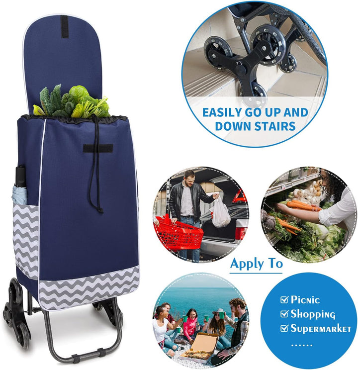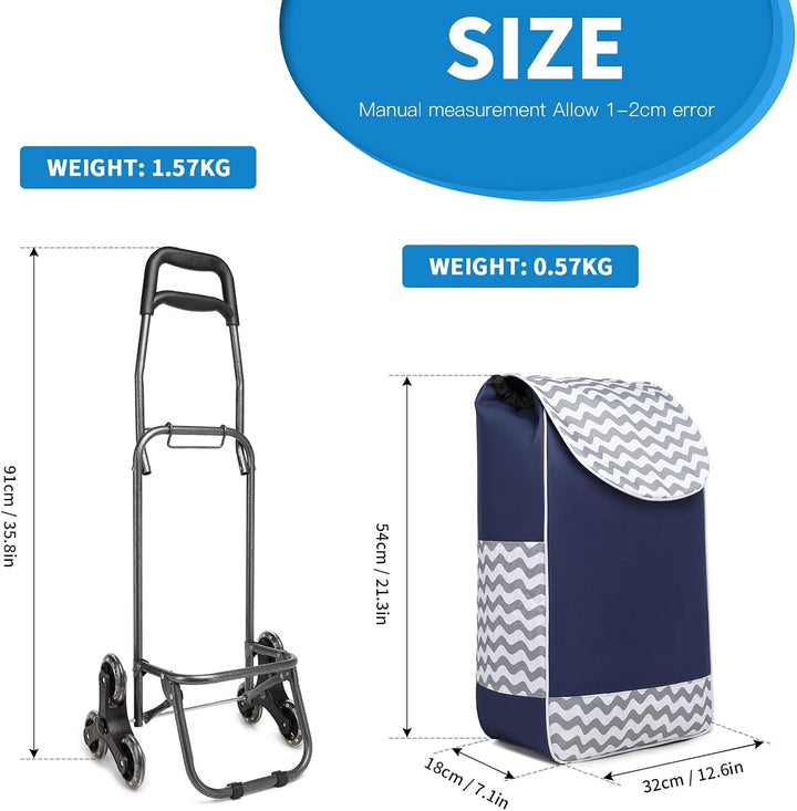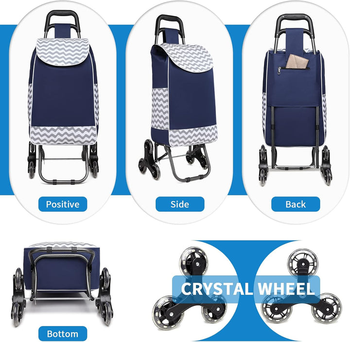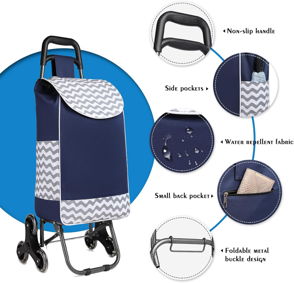 - Einfaches Treppensteigen-Design: Drei schwenkbare Räder auf jeder Seite wurden speziell für die Treppensteigfähigkeit des Einkaufswagens entwickelt, wodurch der Treppenwagen leicht auf und ab gleiten kann, was mehr Arbeit spart. Die verschleissfesten Räder eignen sich auch gut für alle Arten von Treppen, Schlamm, Gras, Kopfsteinpflaster, Beton und Kies.