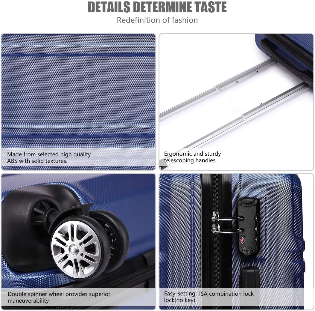 KONO Kofferset ABS Hartschalen Hardcase Trolley TSA-Schloss Reisekoffer Dunkelblau, Dunkelblau